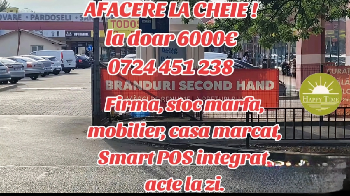 Magazin SH & Outlet functional cu vad format intr-un centru comercial. Magazinul se preda la cheie cu firma, stoc de marfa de aproximativ 9.000 euro, mobilat, utilat, clima Mitsubishi, sistem integrat de gestiune Smart Bill POS, casa de marcat, POS, contract cu firma de contabilitate, totul la zi. plus cel mai important incepi sa vinzi de a doua zi. Pretul de preluare este de 6000 Euro iar daca doriti sa preluati afacerea pe firma dvs. pretul este de 5000 Euro in care intra stocul de marfa si mobilierul care a costat mai mult de 1000 euro. Se asigura continuitatea cu furnizori de marfa Crema si Branduri Olanda. In plus puteti aduce orice alte produse care considerati ca sunt usor vandabile.