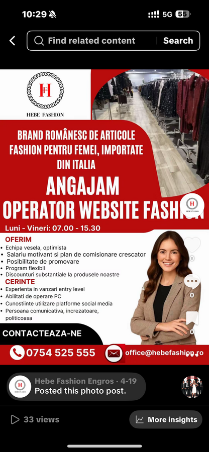 Angajam o persoana responsabila sa se ocupe de comenzi preluate de la clienti pe Whatsapp, Facebook etc.