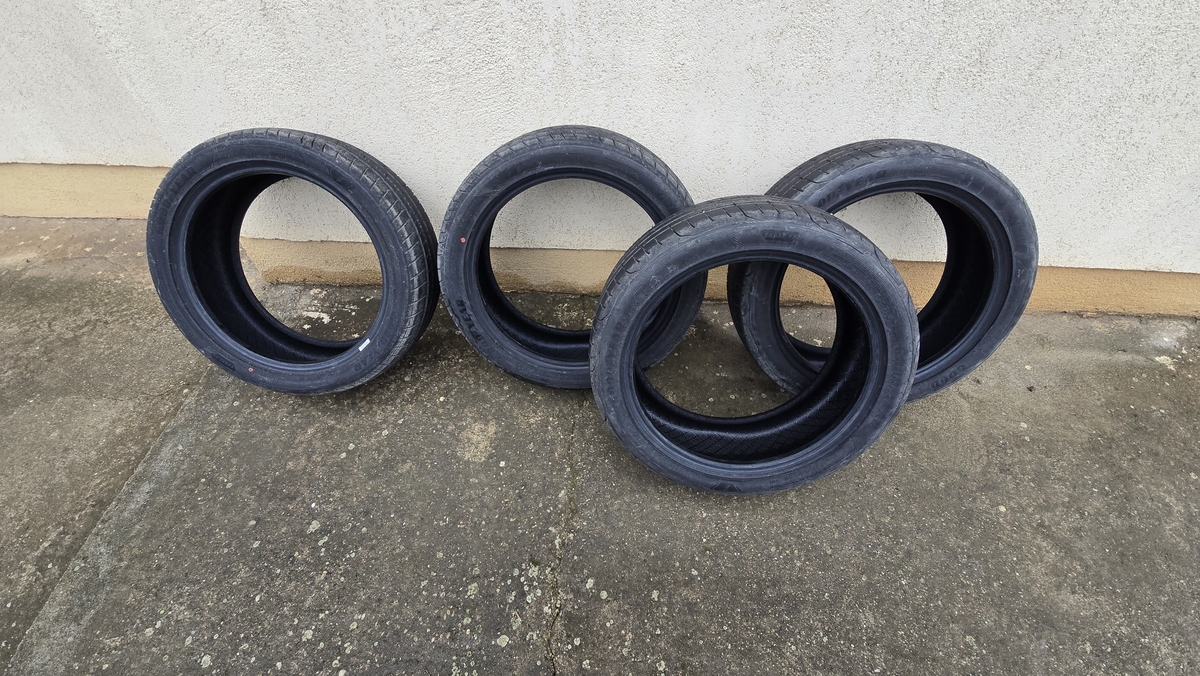 Anvelopele sunt in stare impecabila, practic noi, rulate pe o distanta de doar 25 de kilometri (de la dealer pana acasa pana la vulcanizare). Fara defecte ascunse, taieturi, petice sau uzura. Profilul este intact, exact ca la anvelopele noi.