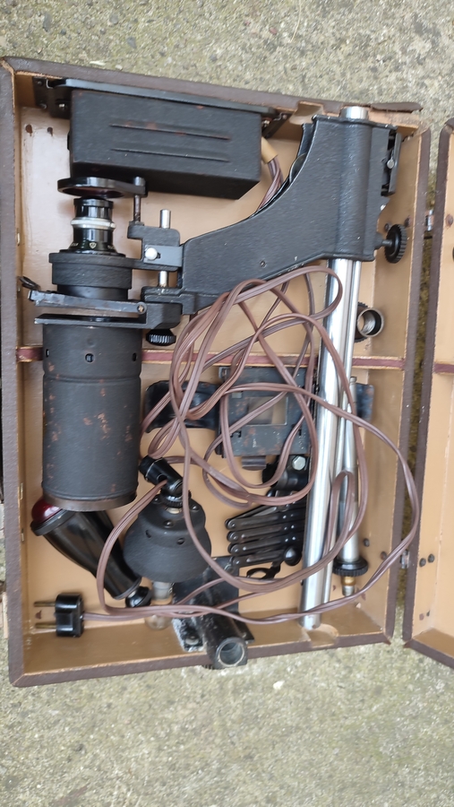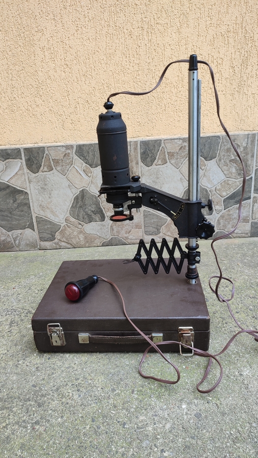 Aparatul este functional si se prezinta in starea din poze. Vine insotit de valiza de transport.