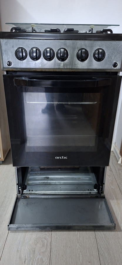 Vand aragaz Arctic, aprindere electrica, grill, rotisor, cuptor iluminat, dimensiuni: 85×50×60cm, lada de depozitare, pret 400 lei negociabil.