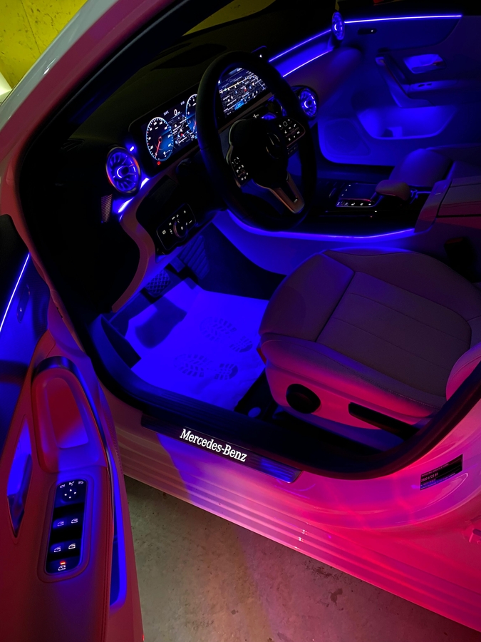 Mercedes Benz A200, cutie automata, faruri multibeam, keyless entry, keyless go, tapiterie piele alba integrala, incalzire in scaune, volan incalzit, lumini ambientale, praguri iluminate, tablete mari, carplay / android auto, toate sistemele de siguranta, suspensie sport.