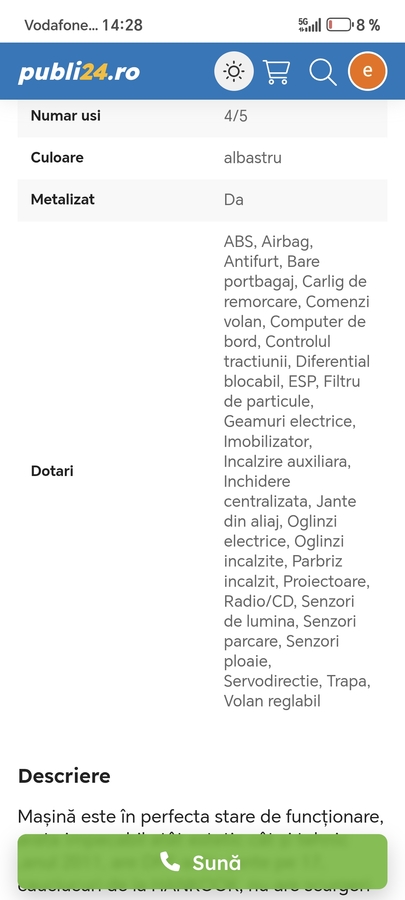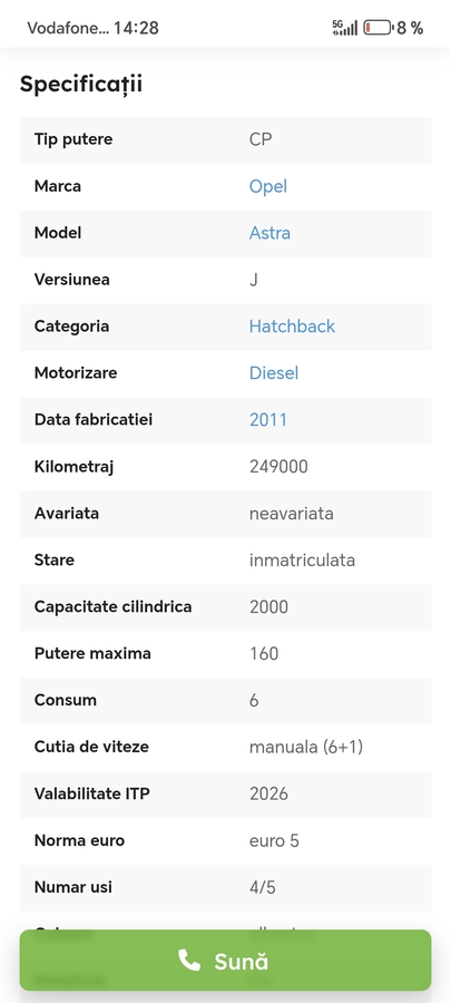 Masina este in perfect stare de functionare, arata impecabil atat estetic cat si tehnic ,anul 2011, are DPF activ, jante pe 17, cauciucuri de la HANKOOK, nu are scurgeri de ulei, nu da cu fum, nu bate, nu troncane, are 249.000 km reali se pot verifica ofer seria sasiu, sunt proprietare in acte, tiacte actele valabile, masina pentru un motor de 2000 diesel 160 de cai, are un consum de 6% in oras pe probate!o dau asa cum sa vede, huse de piele, covorase tip tavita, lumina ambientala bord, oblinzi electrice si incalzite , trapa electrica perfect functionala, si alte dotari pt cei interesati , rog sa ma contactati la 0766396050 sau mesaj aici! Va multumesc, pretul nu este negociabil.