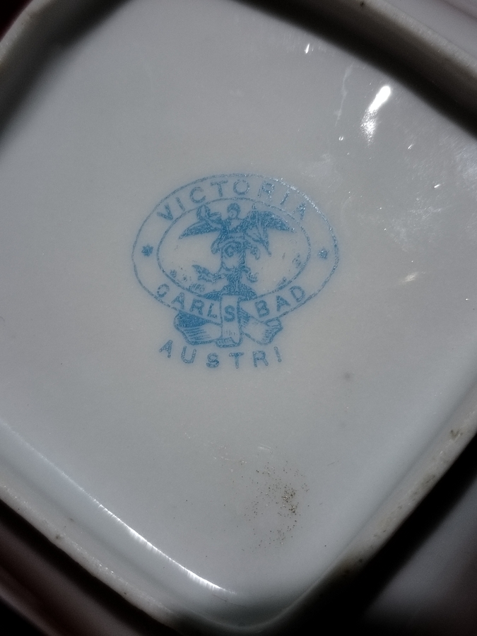 Bol decorativ de colectie, realizat din portelan fin boem, produs in anii 1895, de fabrica Victoria Carlsbad Austria, aflata atunci in imperiul Austro-Ungar.
