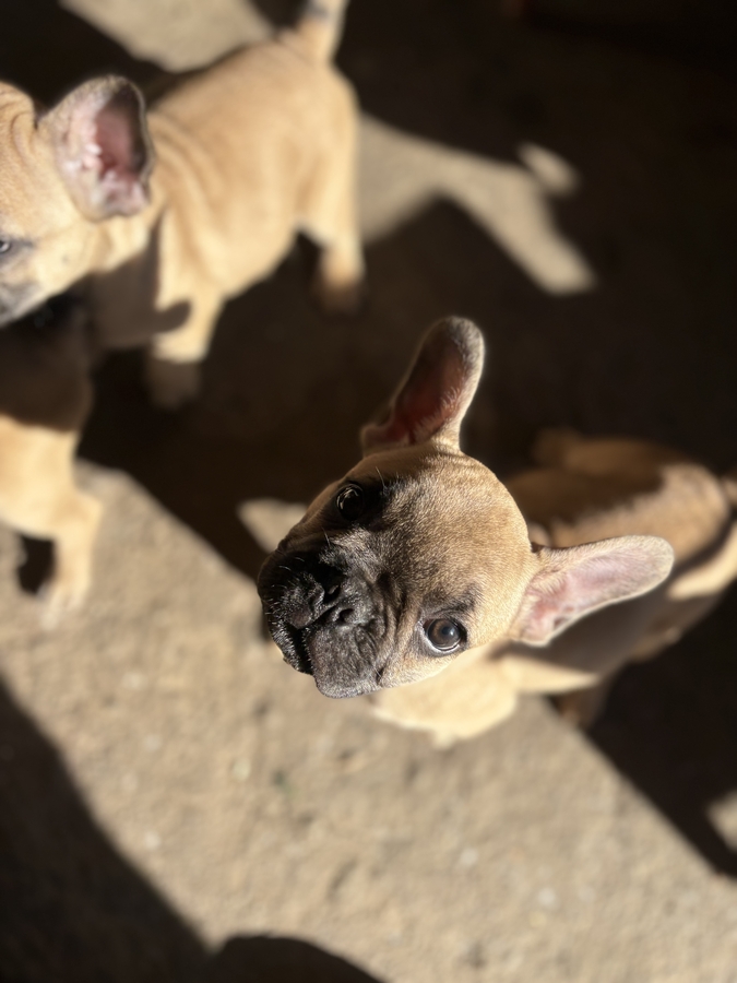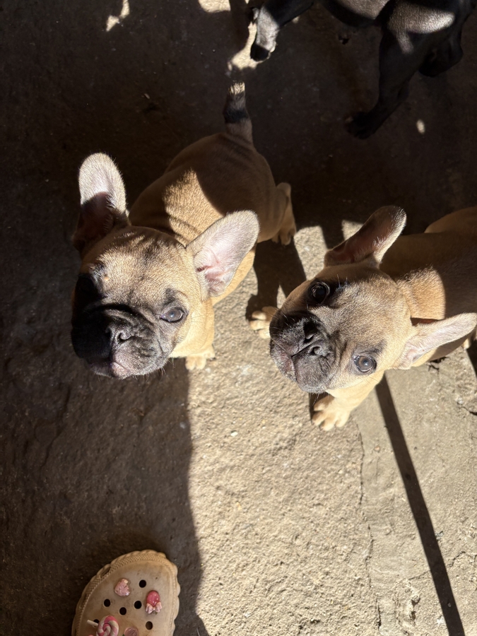 2 buldogi francezi, nascuti in septembrie, o femela si un mascul, foarte jucausi, afectuosi si sociabili.