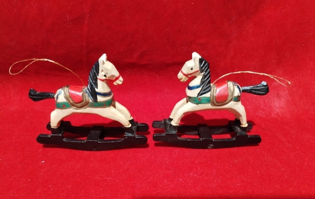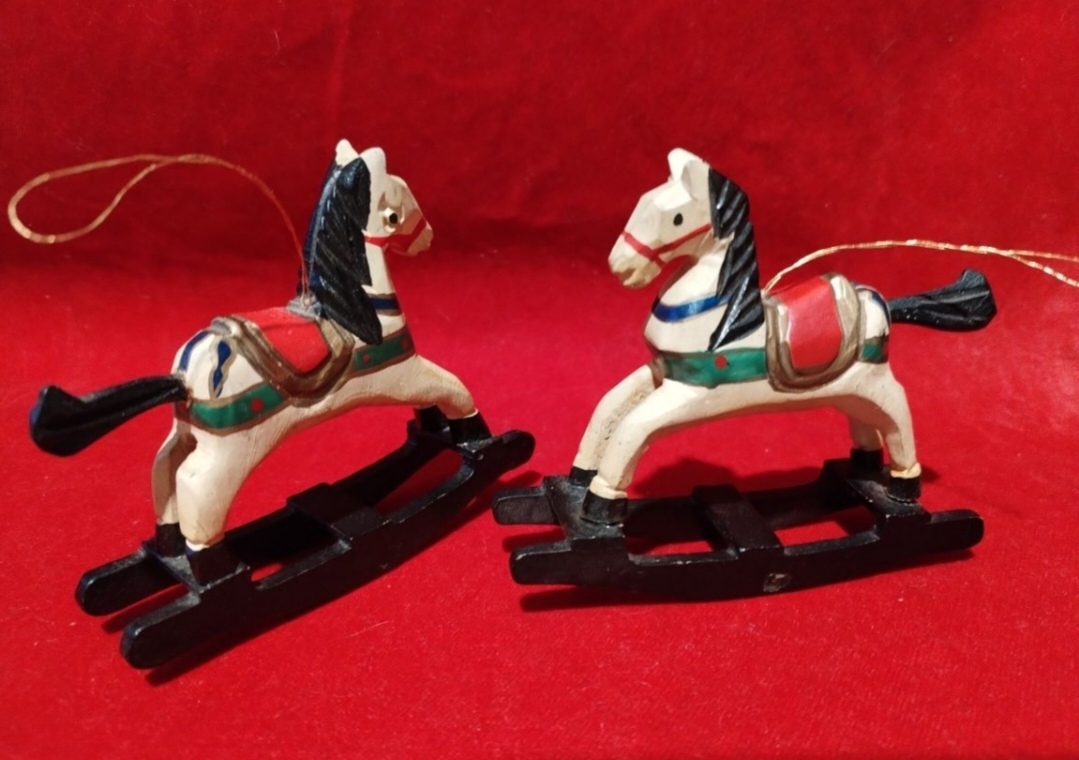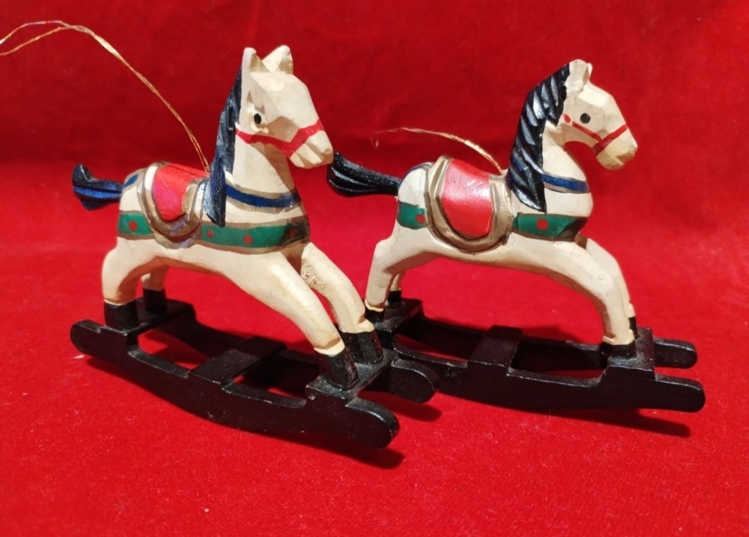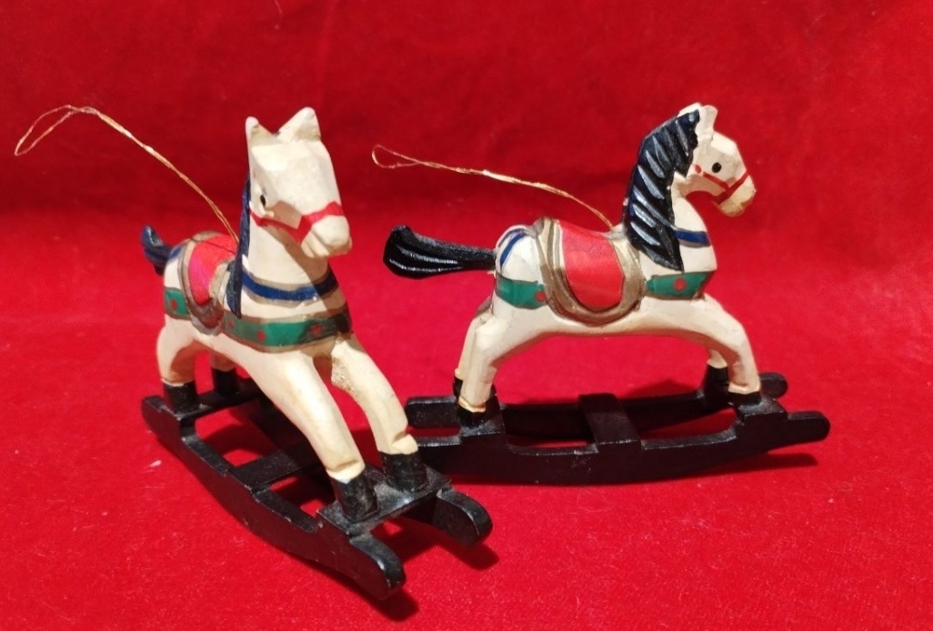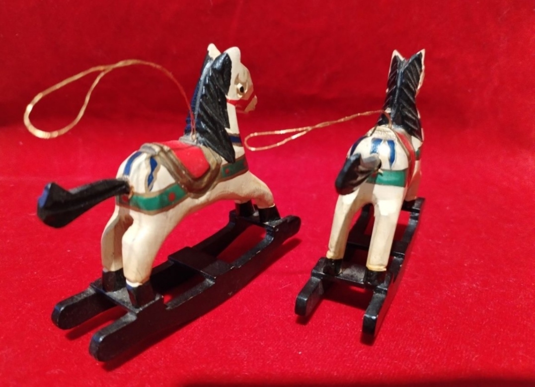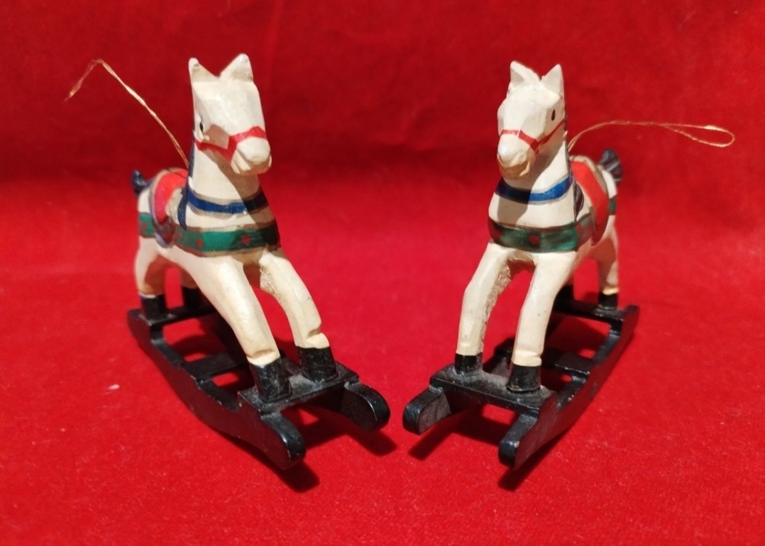 Caluti francezi balansoar, de epoca, sculptati si pictati manual pe lemn, si realizati intre anii 1940-1950.