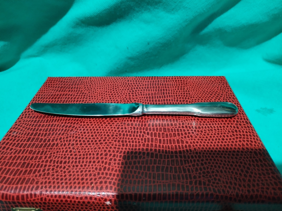 Caseta cu 12 cutite franceze Guy Degrenne, realizate din inox masiv, anii 1950-1960.