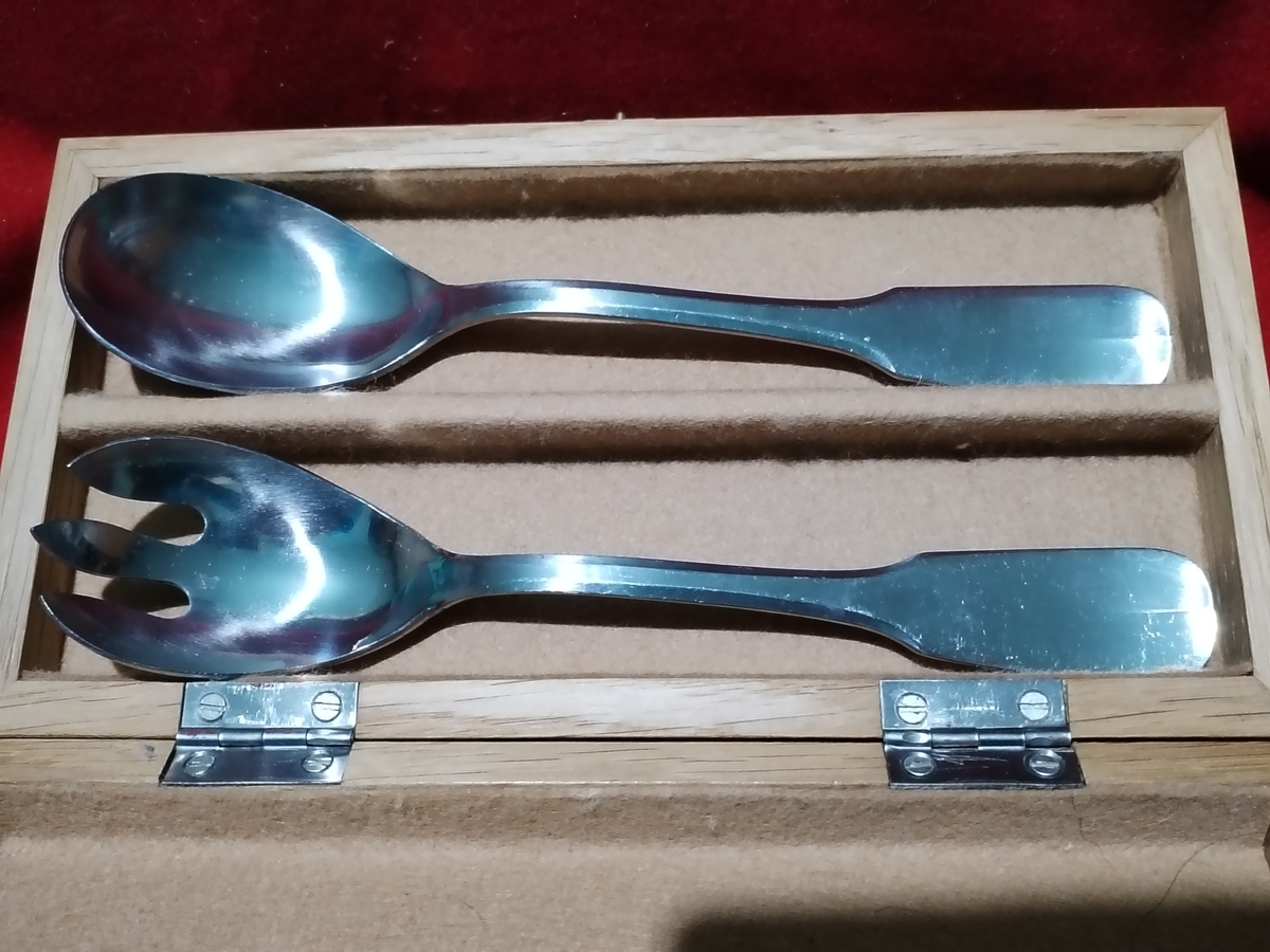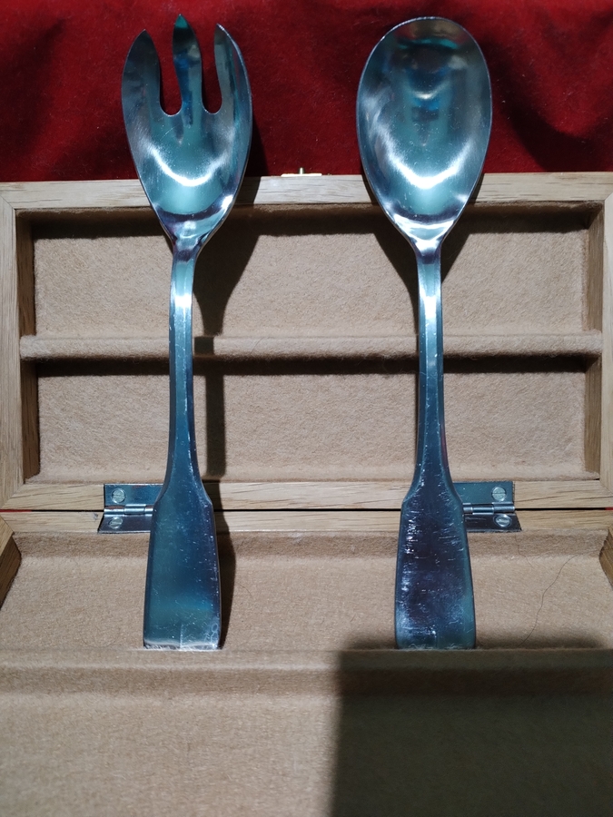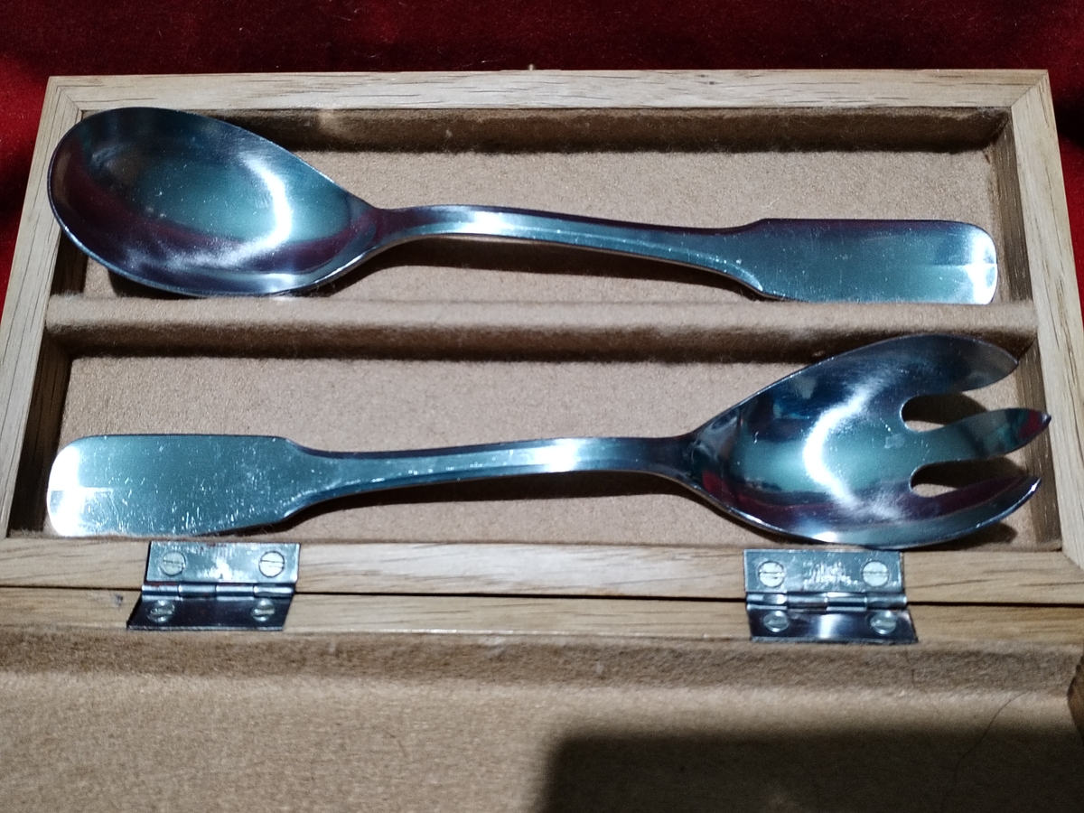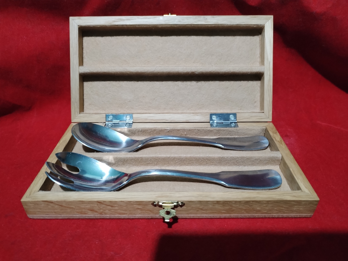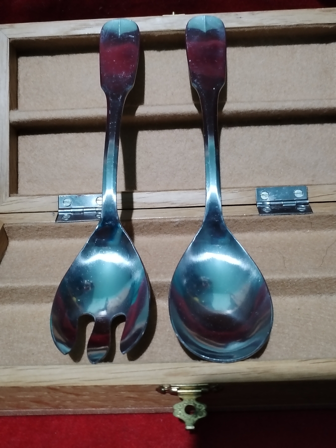 Caseta franceza Guy Degrenne cu lingura si furculita pentru salata