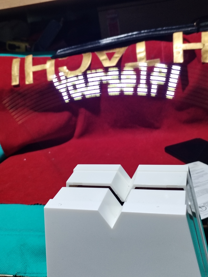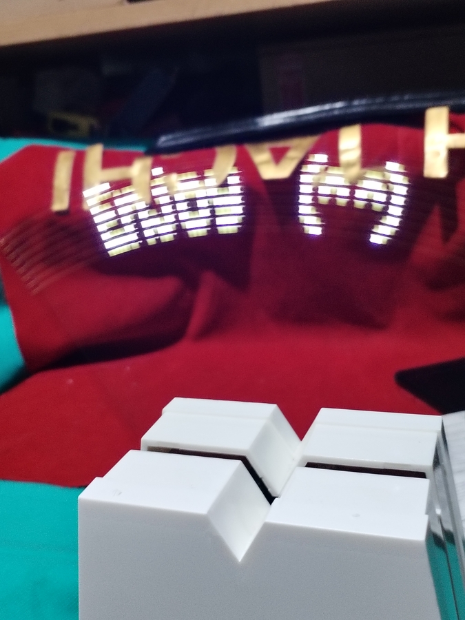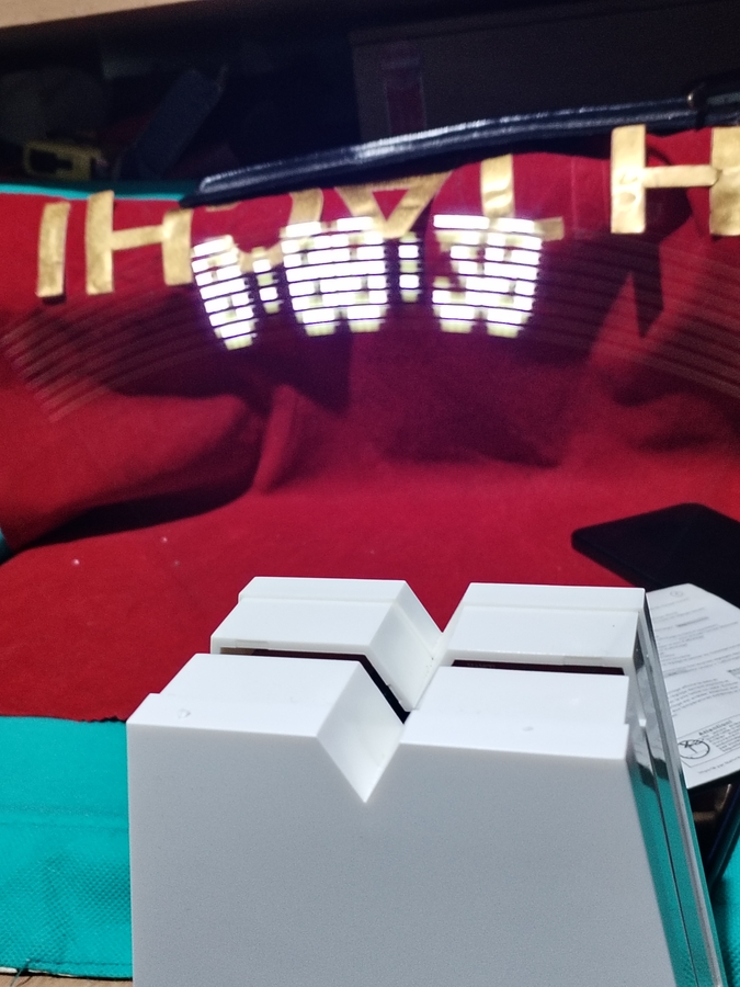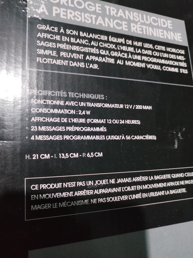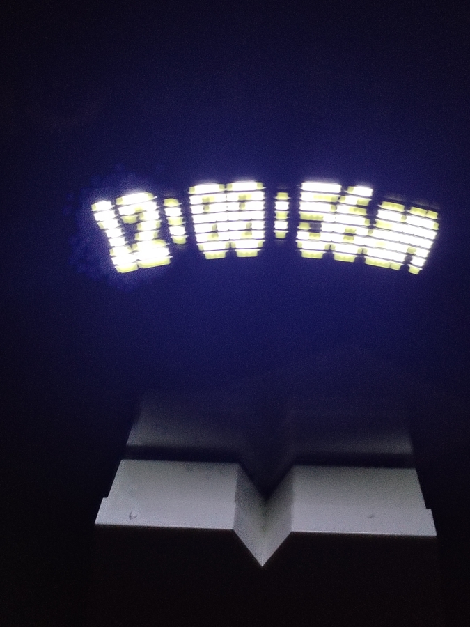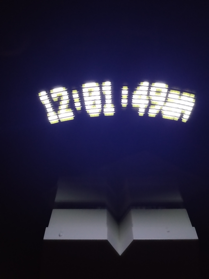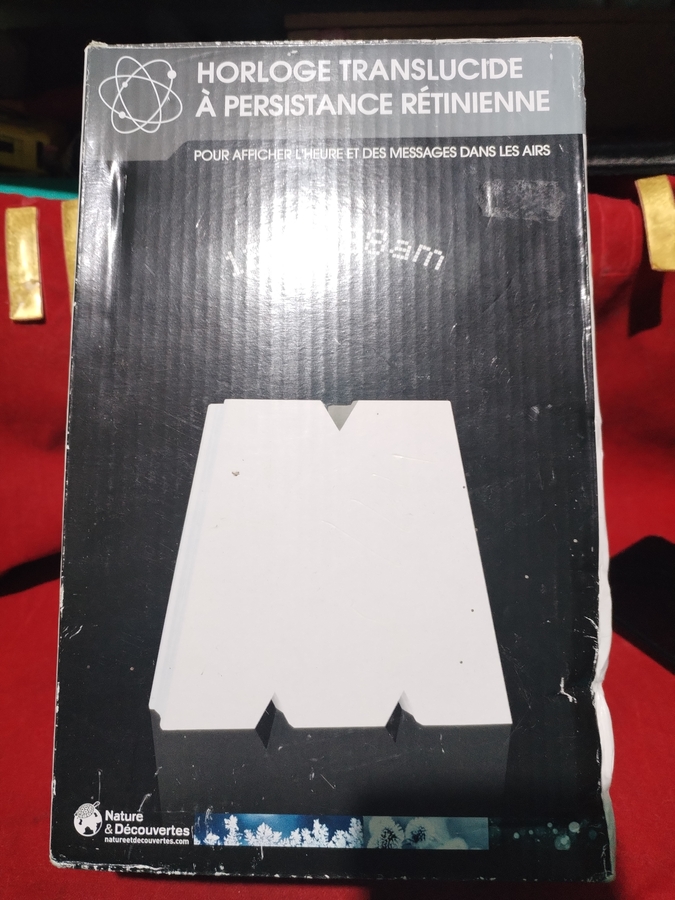 Acest ceas foloseste iluzia optica a persistentei retiniene, pentru a afisa ora si alte mesaje in aer.