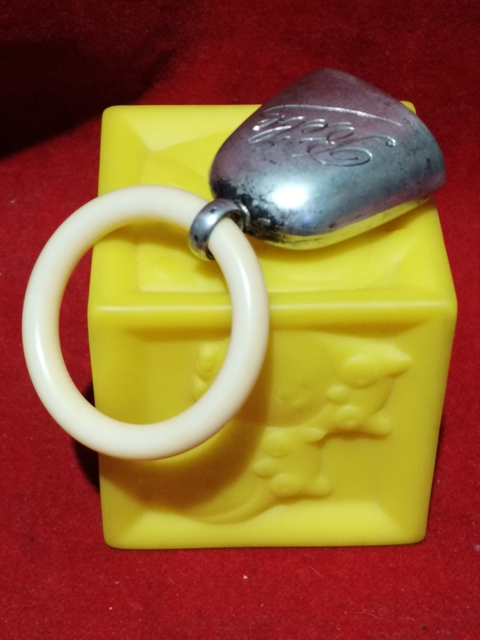 Era folosit ca jucarie si dentitie (inelul din fildes), o combinatie frecvent intalnita in obiectele de lux pentru copii, specifice perioadei Belle Epoque.