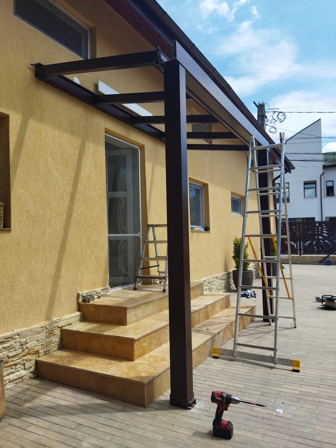 • Pergole Retractabile din Aluminiu: Structuri rezistente cu acoperis automatizat (PVC multistrat sau lamele bioclimatice), dotate cu sistem de drenaj al apei integrat si iluminare LED.