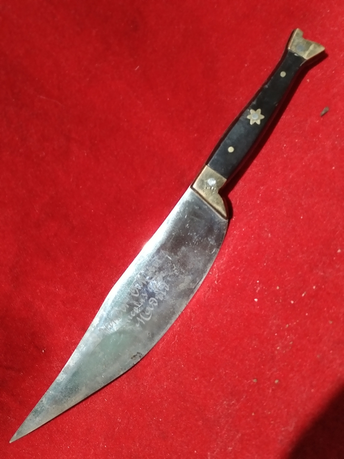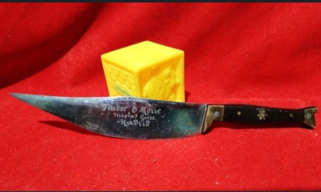 Cutit vechi spaniol gravat pe lama Vincere Or Morir, tradus prin "Invinge sau Mori".