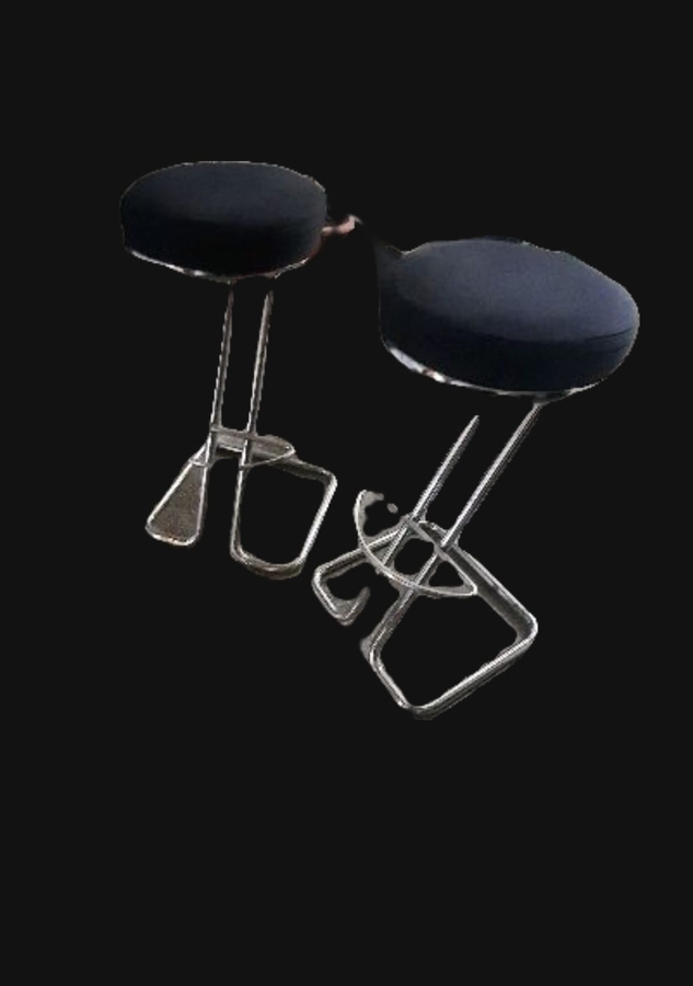 Doua (2) Scaune tip Bar inox cu sezut stofa
