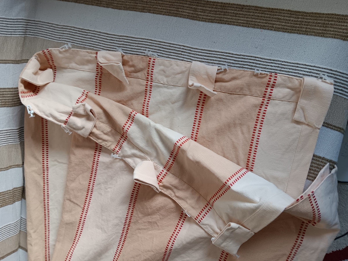 Vand o draperie groasa formata din 2 bucati a cate 225 cm lungime si 130 cm latime fiecare, bumbac 100%, tocmai spalata, dar necalcata, cu elemente de prindere.