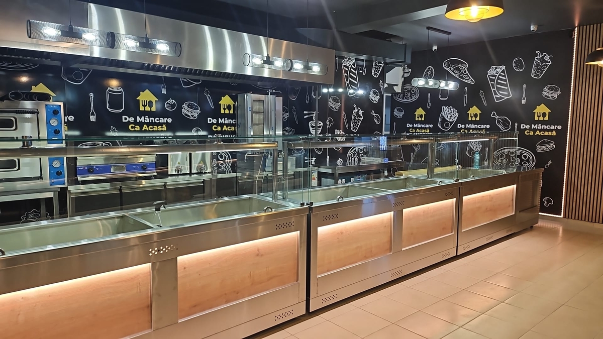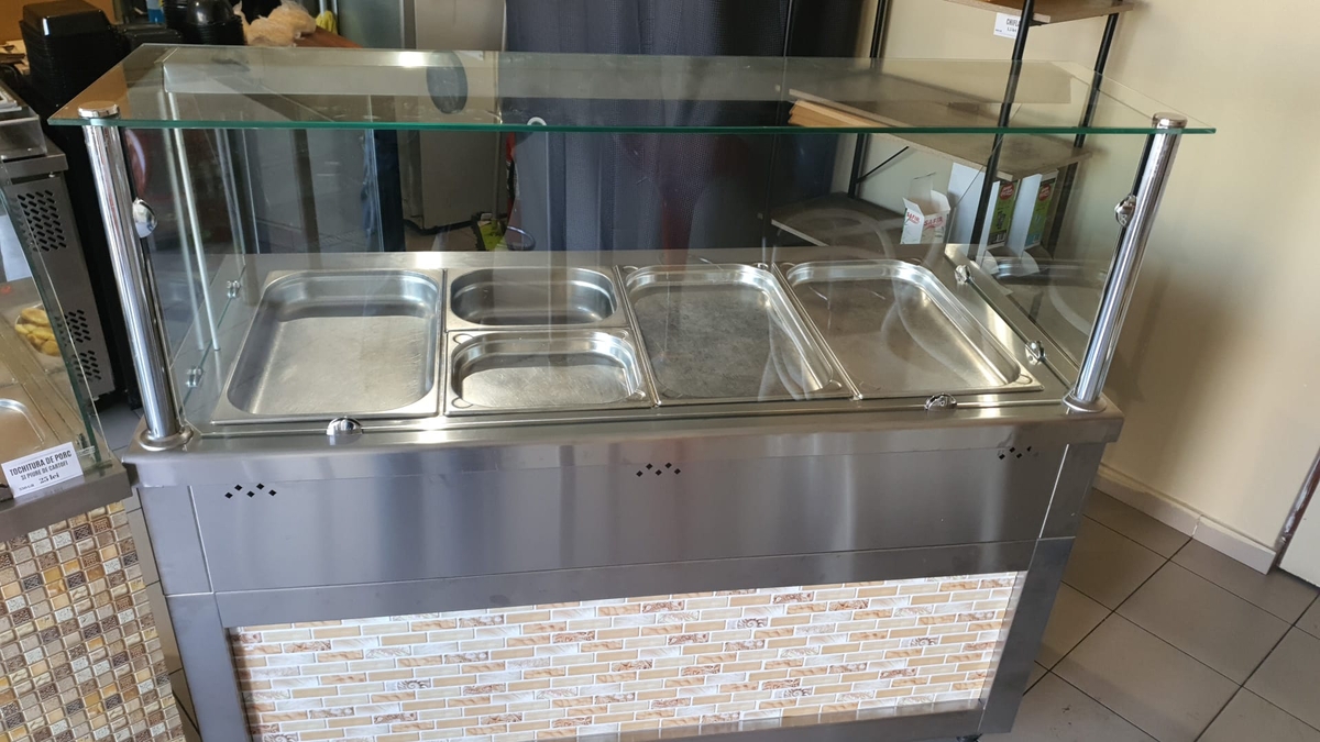 Dispenser pentru tacamuri, tavi si paine, unitate de incasare