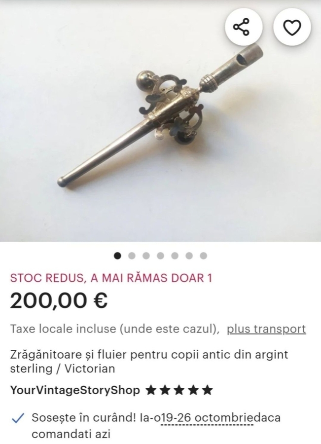 Fluier victorian din argint pentru copii