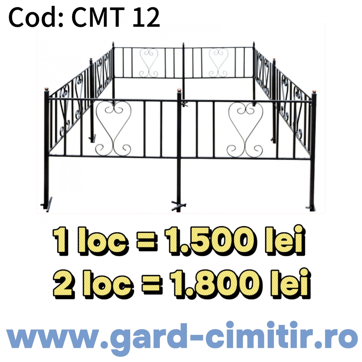 Confectionam la comanda orice model si dimensiune de gard imprejmuire mormant pentru un loc sau doua locuri de veci, cruce funerara, masuta funerara, felinar