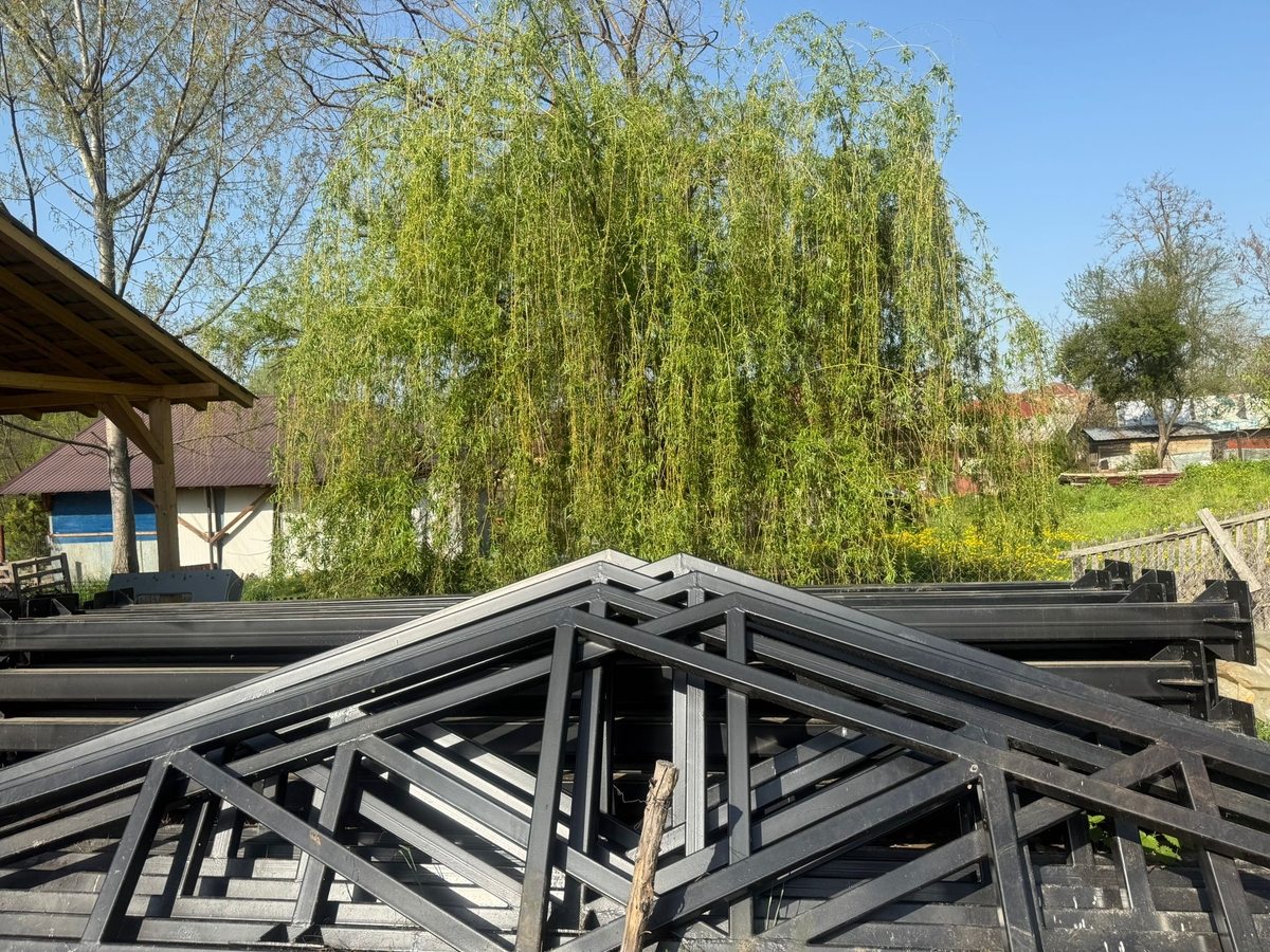 Set complet: stalpi, ferme, contravantuiri, placi baza/ cuzineti, suruburi; prinderi pentru panouri sandwich la acoperis.