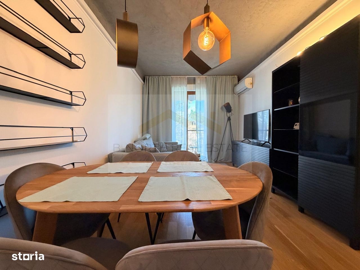 Apartament premium cu 2 camere, situat intr-o vila P+1+M, cu o suprafata utila de 58 mp, complet mobilat si utilat, ideal pentru persoane care isi doresc liniste, confort si spatiu exterior privat.