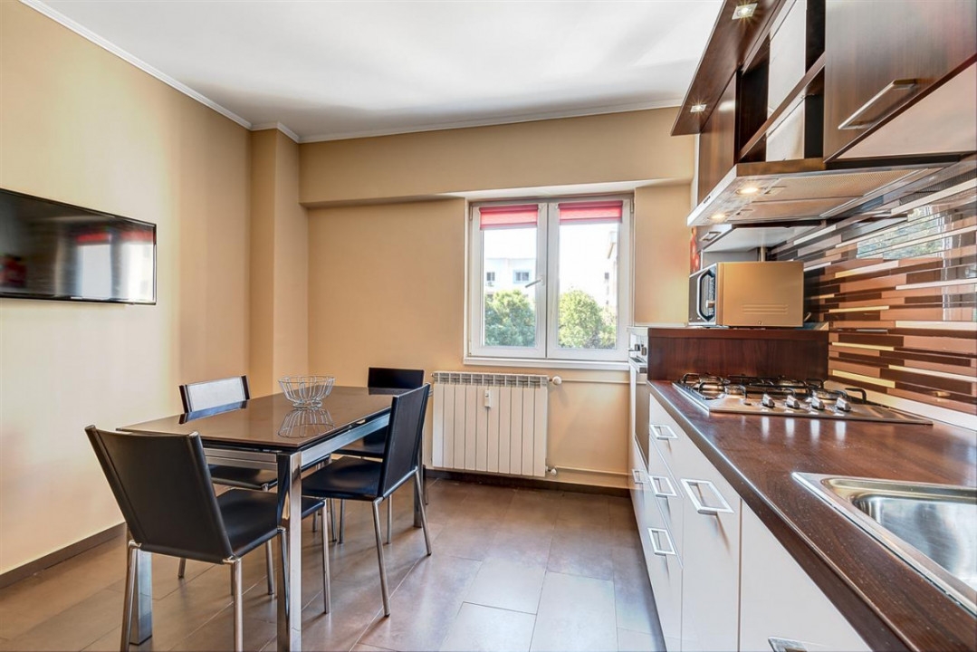 Bucataria este mobilata si utilata cu plita cu gaz si cuptor, cuptor cu microunde, hota, frigider. Apartamentul beneficiza de un hol generos la intrare dotat cu un dulap generos pentru depozitare. Balconul cu acces din living este inchis cu tamplarie pvc cu geam termopan.