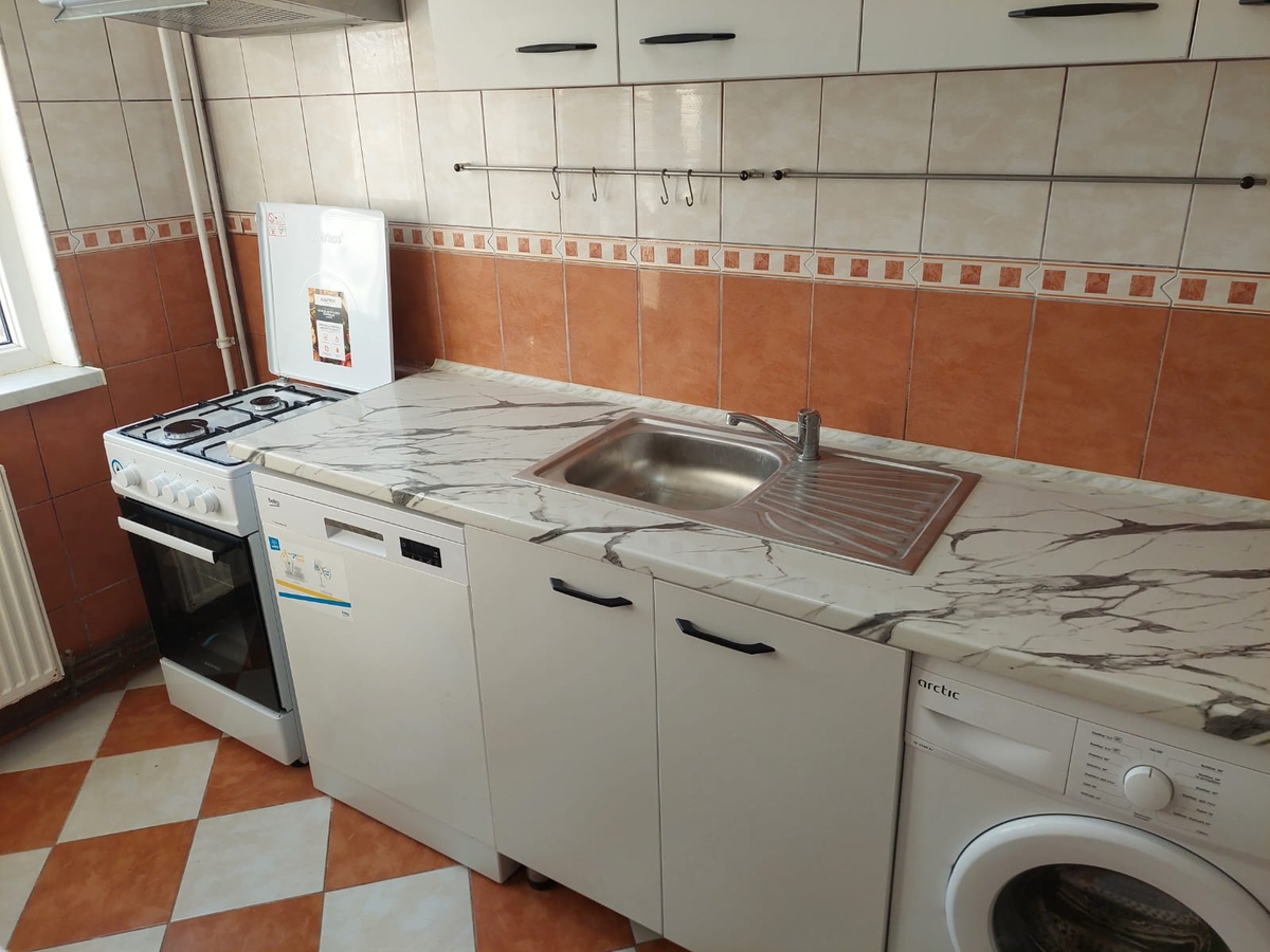Apartament decomandat, complet utilat ( inclusiv aparat de aer conditionat si masina de spalat vase) si mobilat , centrala termica, canapea extensibila etc.