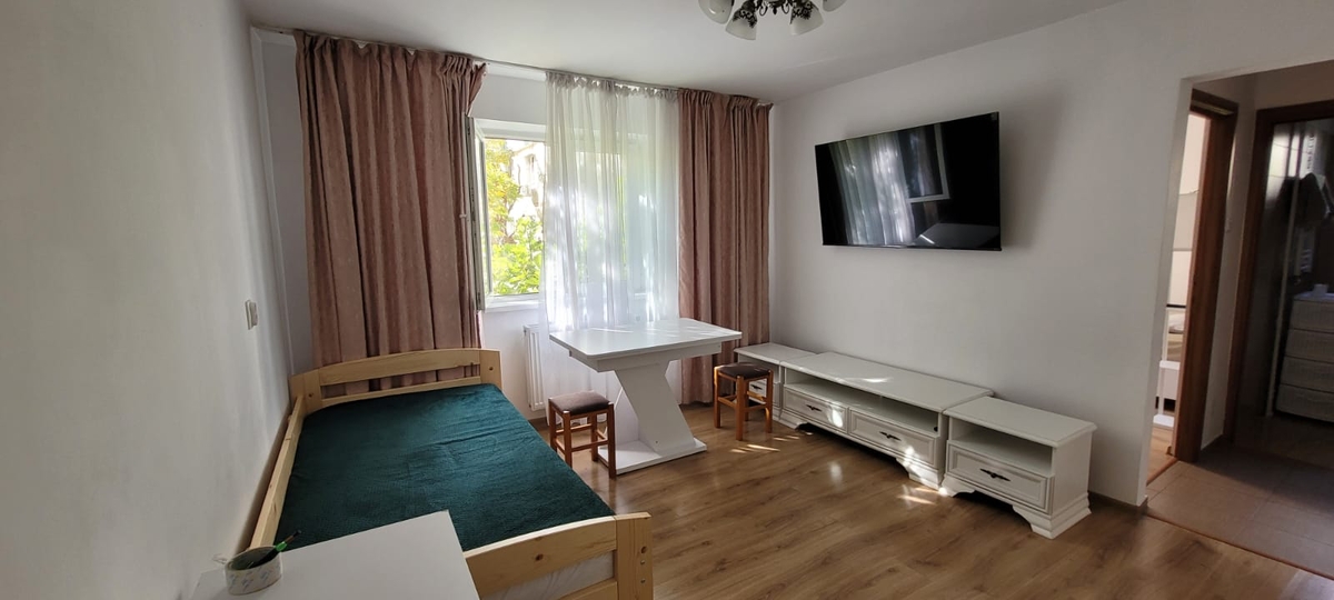 Va propunem spre inchiriere un apartament de 2 camere foarte frumos amenajat, mobilat si utilat, situat intr-un bloc de 4 etaje, la etajul 2, masina de spalet rufe si uscator, aer conditionat, termopan, gresie, faianta, parchet, electrocasnice.