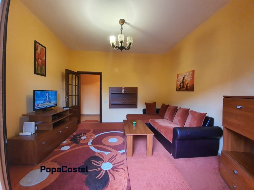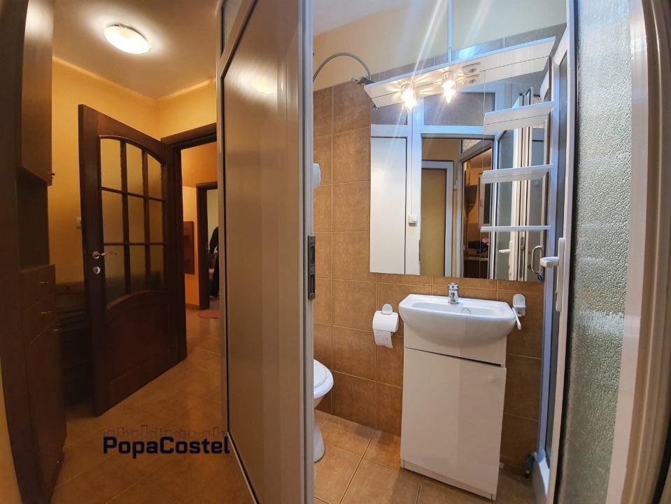 Dacia - Hotel Sheraton disponibil spre inchiriere apartament cu 2 camere de tip decomandat, situat la etajul 3 din 7 al unui bloc bine intretinut. Locuinta are o suprafata utila de 60 mp si este complet mobilata si utilata, exact ca in imagini. Este compusa dintr-un living spatios de 25 mp, un dormitor confortabil de 16 mp, o baie micuta cu dus, o bucatarie cocheta si eficient organizata, un hol generos si doua balcoane. Apartamentul ofera spatii ample de depozitare, fiind ideal pentru un stil de viata organizat. Finisajele includ ferestre din PVC cu geam termopan, gresie, faianta, parchet si usa metalica la intrare. Dotarile cuprind internet prin cablu si wireless, cablu TV, antena parabolica, doua televizoare, aer conditionat, aragaz, frigider, cuptor cu microunde si masina de spalat rufe. Incalzirea se realizeaza prin calorifere conectate la centrala termica a blocului, iar locuinta este echipata cu apometre si repartitoare. Apartamentul se afla intr-o locatie excelenta, cu acces facil la mijloace de transport, magazine, restaurante si alte facilitati urbane. Se prefera chiriasi fara copii mici si fara animale de companie. Suntem agentie imobiliara si percepem comision. Mai multe oferte, detalii si informatii gasiti pe site-ul nostru: PopaCostel.ro