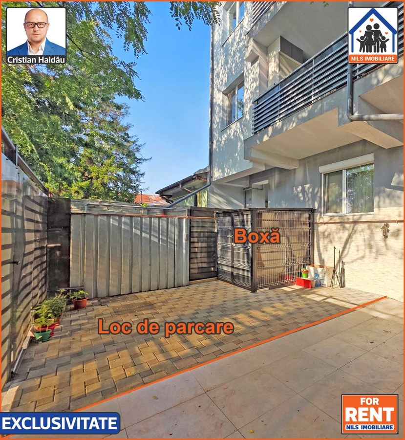 Apartamentul are si o curte proprie de 29mp cu loc de parcare si un spatiu de depozitare acoperit pentru biciclete, trotinete, carucioare etc. /