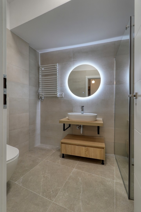 • Hol spatios, amenajat cu dressing si cuier elegant, oferind spatiu amplu pentru depozitare si o prima impresie rafinata la intrare