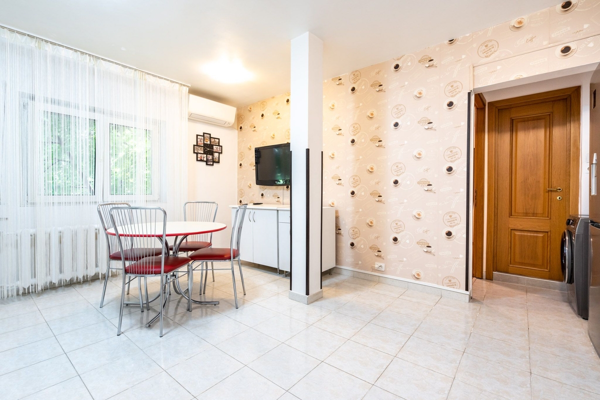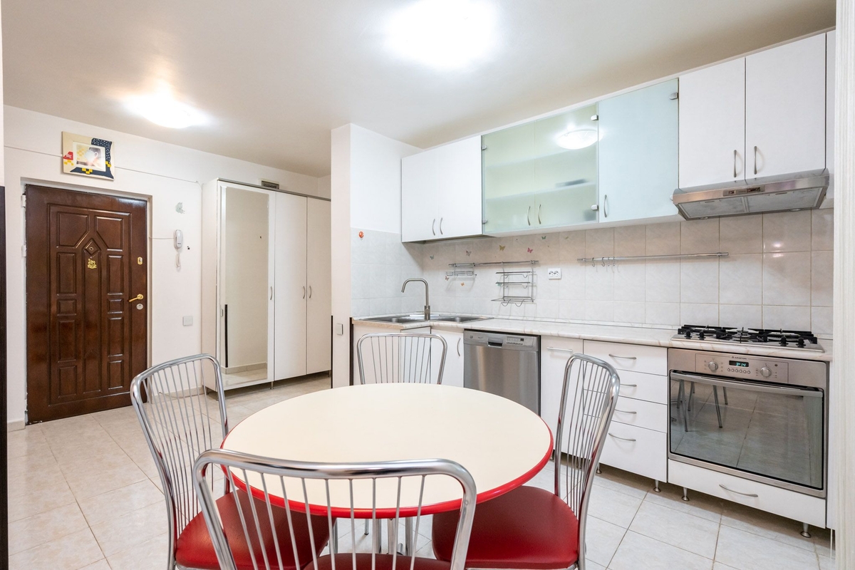 Bucataria mobilata si utilata, tip open - space este inima acestui apartament, locul perfect de stat la povesti cand ajungi acasa, dispune de Tv si o masa de dining pentru 4 persoane.