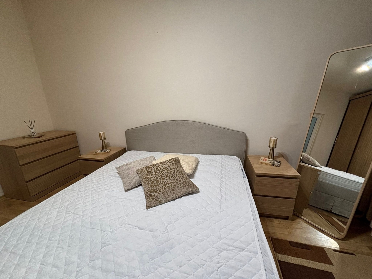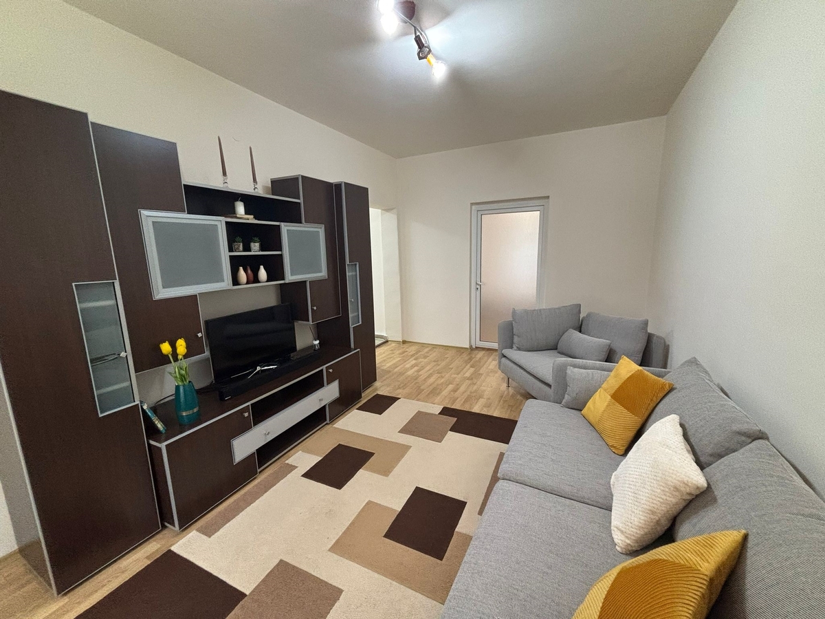 2 camere zugravite proaspat, etajul 1/3, semidecomandat, suprafata 48 mp, balcon, mobilat si utilat nou, A/c, saltea noua, geam la baie, vedere mixta est-vest. Pret: 575 euro/luna, comision 0%,