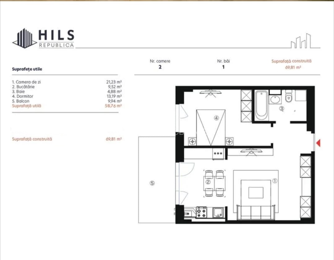 Complex Rezidential nou 2025 Hills, paza 24/24, Metrou Costin Georgian 9 minute (650 metri), Prima Inchiriere, 2 camere 70 mp construiti, 59 mp utili, et 7/11, Optional 2 Locuri Parcare Subteran 50 euro/luna bucata