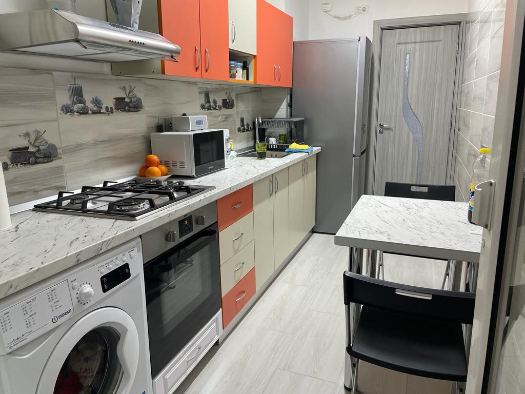 2 camere confort 1 decomandat, mobilat modern, etaj 10/11, frigider, aragaz, masina de spalat, aer conditionat, renovat, gresie, faianta, parchet, termopan, bloc reabilitat.
