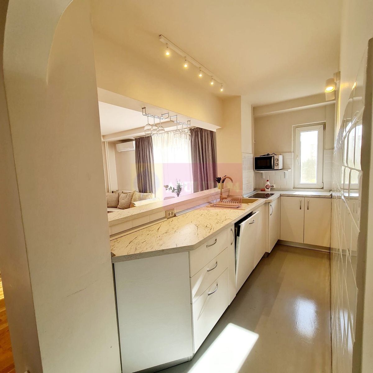 Va oferim spre inchiriere un apartament de 2 camere in rondul Alba Iulia, la etajul 3/8, cu bucaarie open in sufragerie, cu dressing mare in dormitor, mobilat si utilat complet modern. In baie cabina dus cu aerisire naturala cu geam.