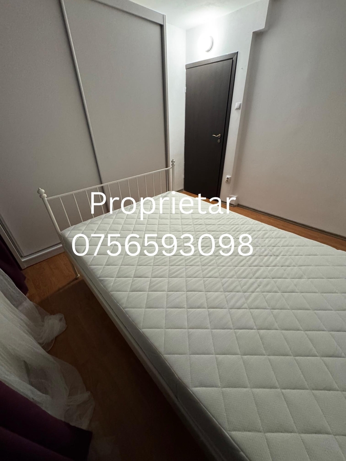 Dormitorul este mobilat cu: pat metalic 140×200, saltea ortopedica noua, dulap alb, aer conditionat.
