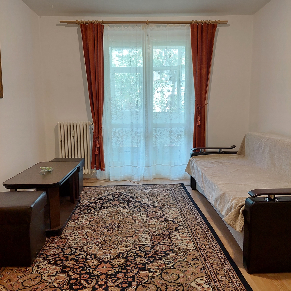 Apartamentul are parchet, ferestre termopan, inclusiv balconul, este mobilat si utilat clasic, aragaz, frigider, masina de spalat rufe, in dormitor pat de mijloc, comoda, noptiere, dulap haine, in sufragerie canapea extensibila, dulap haine, birou, etc.