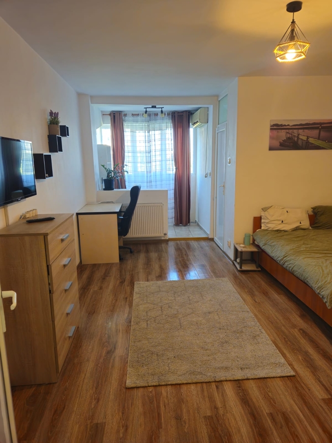 Va propun spre inchiriere o garsoniera situata la intersectia Sos. Pantelimon cu str. Baicului la cateva minute de mers pe jos de Mega Mall si de Piata Iancului. Avand suprafata de 32 mp, contine: 1 living/dormitor, 1 bucatarie inchisa, 1 baie si 1 logie deschisa. Este intr-un bloc bine izolat (reabilitat, avand costuri mici de intretinere), luminoasa (et. 5 din 10), liniste (vedere pe spate). Statii pentru mijloace de transport in fata blocului (tramvai si autobuz) si la ~10 minute de Metrou Iancului. Garsoniera este mobilata si echipata complet (TV, Internet, frigider, aragaz, cuptor cu microunde, masina de spalat rufe, aer conditionat, boiler wireless etc.)