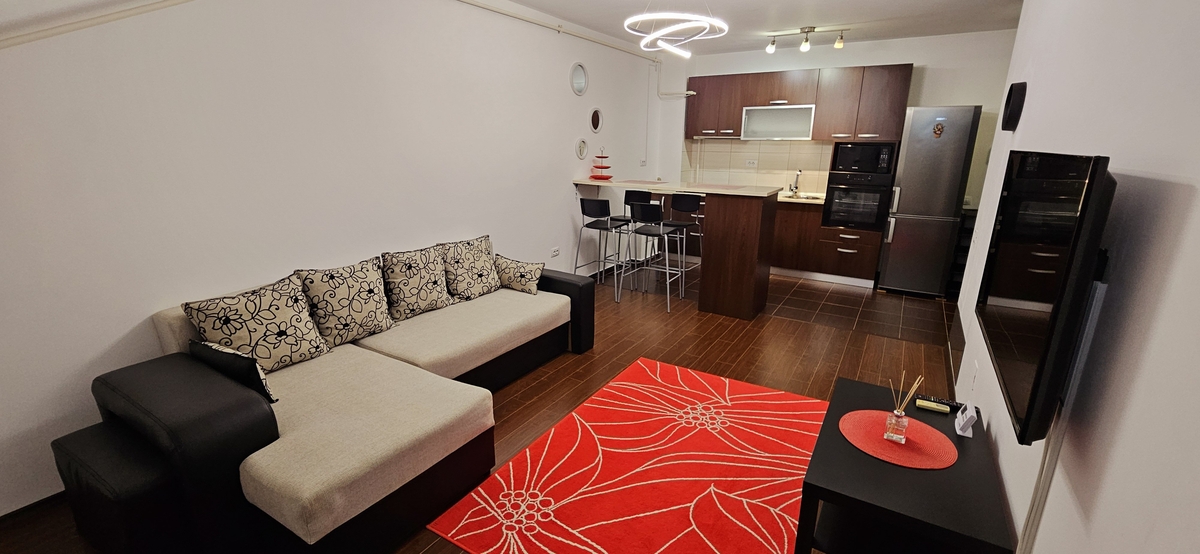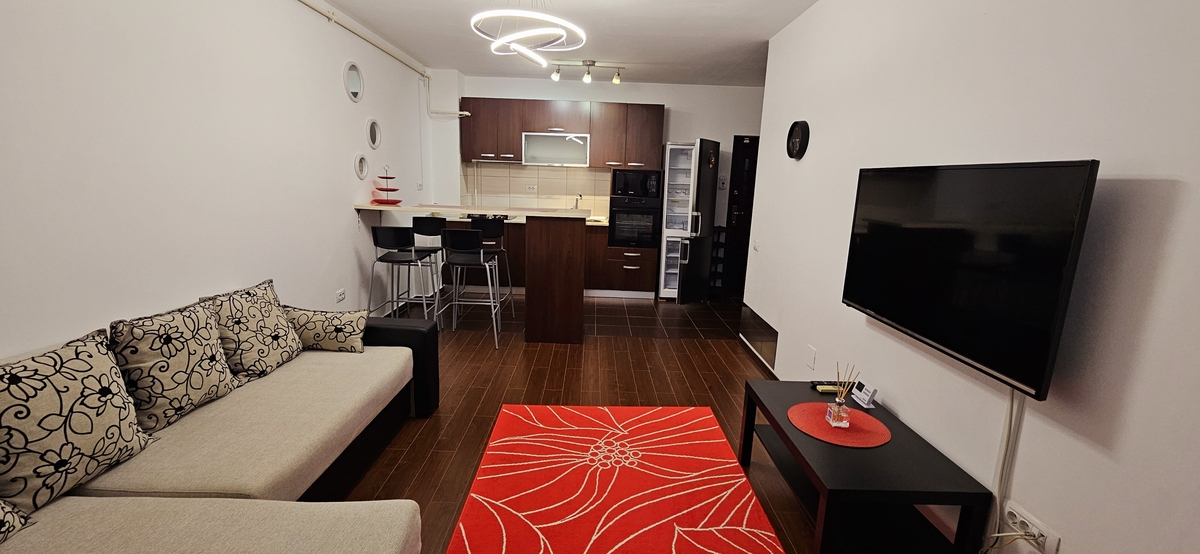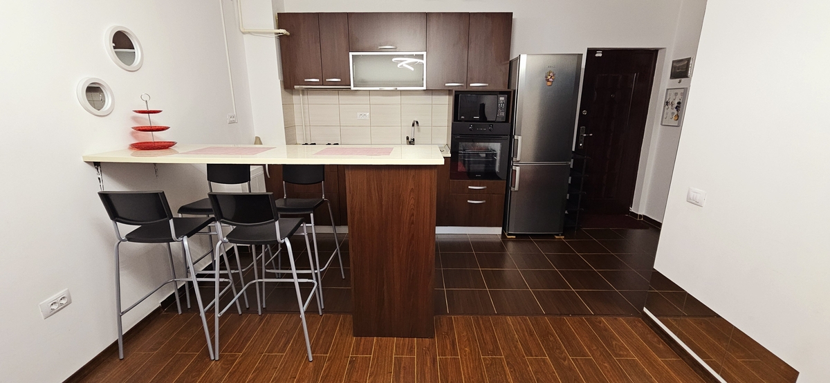 proprietar, cf. 1, decomandat, 50 mp, mobilat si utilat, centrala, parchet, aer conditionat, termopan, parcare cu bariera, et. 9/9, cu 2 lifturi, aproape de Auchan, STB, strand Aqua Garden