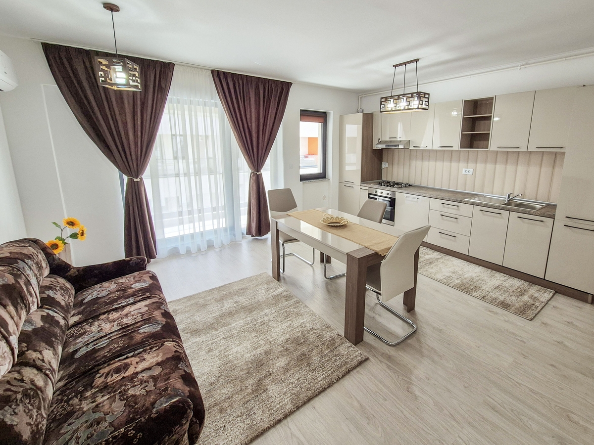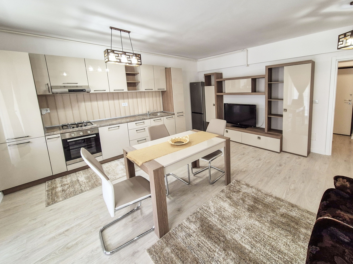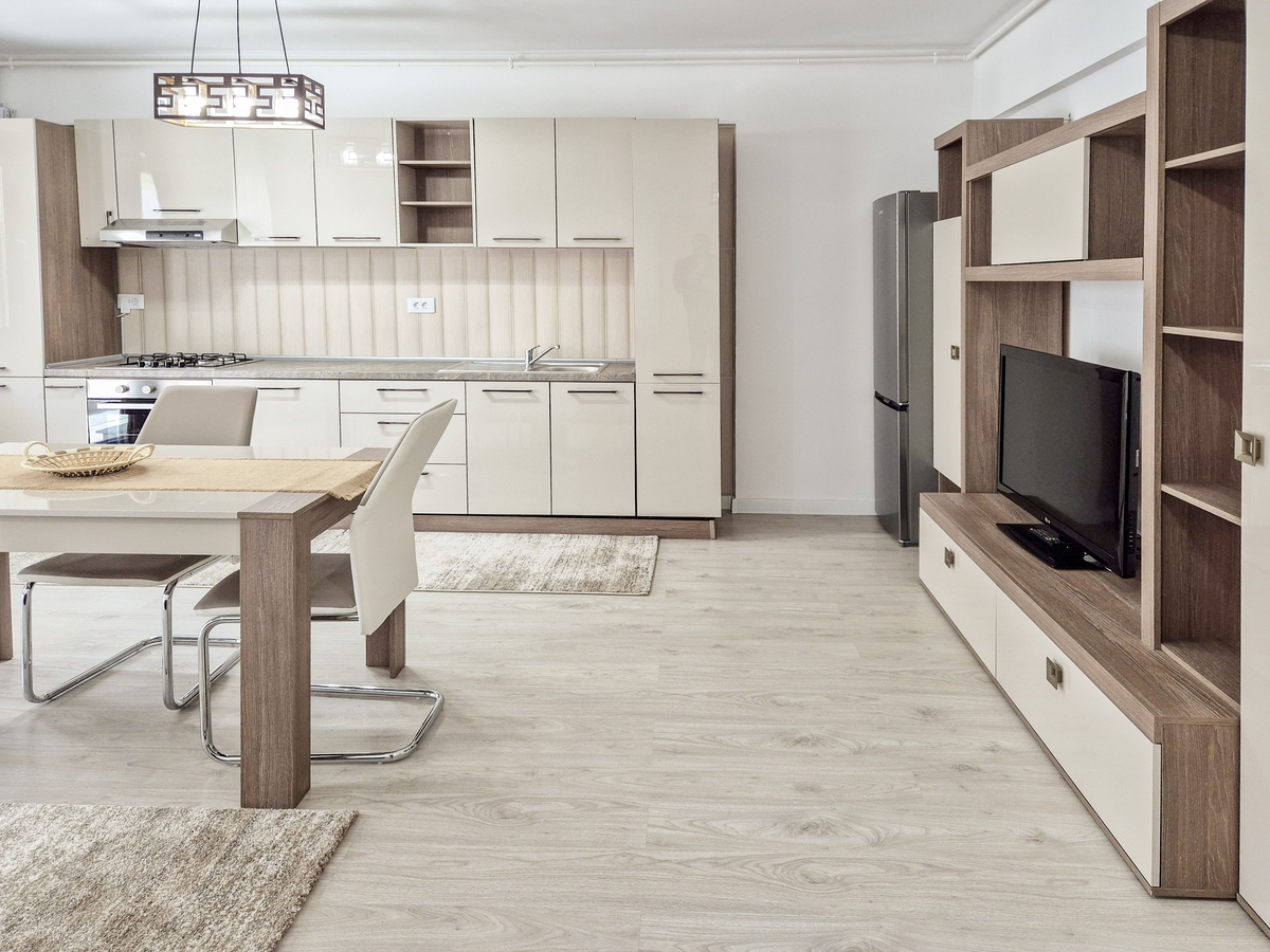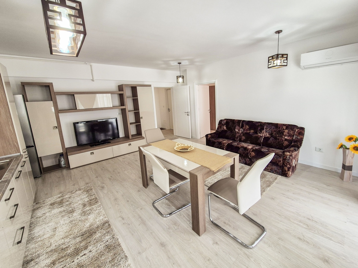 Va prezentam acest apartament cu 2 camere situat la etajul 2 din 3, din ansamblul rezidential Ivory Residence din Pipera. Apartamentul este complet utilat si mobilat, la prima inchiriere si are o suprafata utila de 54.52 mp + balcon de 7.33 mp