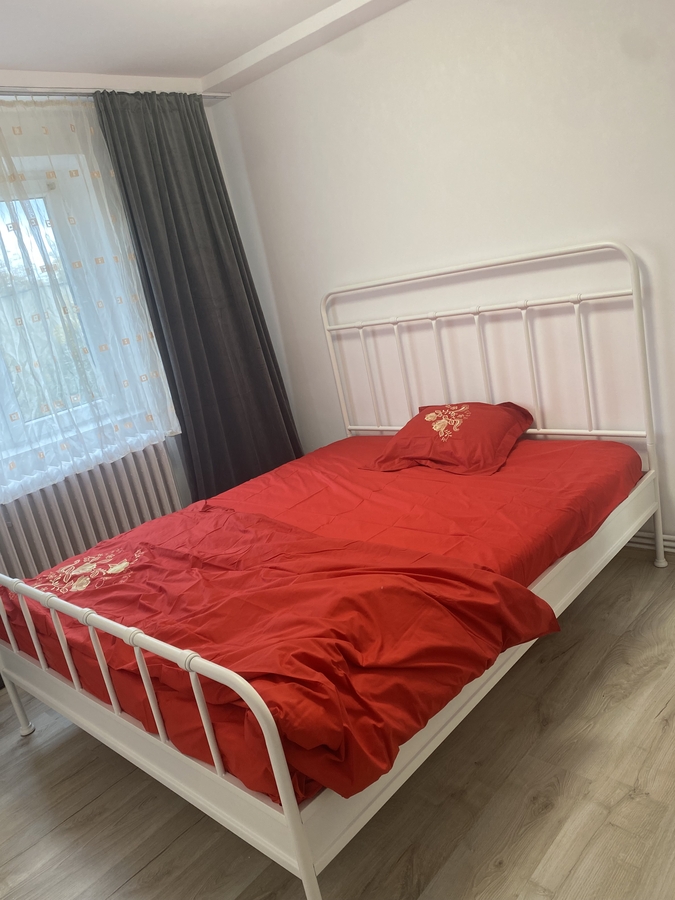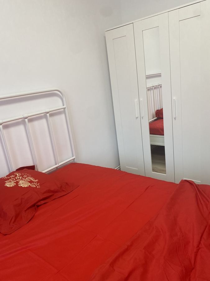 * Dormitor luminos, pat metalic nou cu saltea noua, dulap cu oglinzi