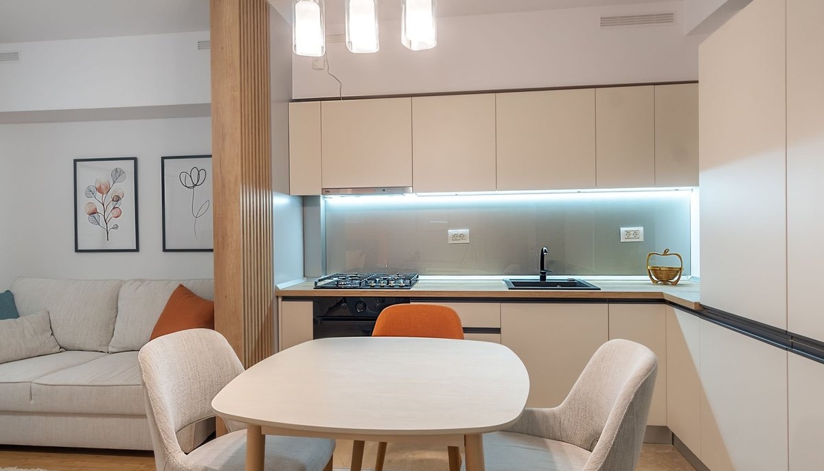 Aflat in centrul Capitalei, in polul de dezvoltare Timpuri Noi, complexul New Times Residence este format din doua blocuri de locuinte, cu zona de subsol comuna. Studio-ul propus, este situat la etajul 8 si tocmai a fost finisat, mobilat si utilat. Toate operatiunile s-au desfasurat sub atenta supraveghere a unui designer. Fotografiile atasate reprezinta exact starea actuala a apartamentului. Va sunt puse la dispozitie : masina de spalat automata cu uscator, , combina frigorifica, televizor 4k Samasung. In bucatarie avem cuptor electric, plita pe gaz si o hota de putere mare. Impartirea studio-ului este ideala. Living-ul si bucataria iti ofera spatiul perfect pentru dimineti linistite sau seri cu prietenii si cei dragi. Daca vrei poti muta distractia si pe terasa care se intinde pe o suprafata de 10 metri patrati. Pentru odihna, reincarcare si relaxare am rezervat un spatiu de aproximativ 12 mp, dormitorul tau cu deschidere spre terasa. In pretul de inchiriere este inclus si un loc de parcare in subteranul imobilului. Scapati astfel de stresul cautarii unui loc de parcare in zona si-l veti aprecia si mai mult in iarna ce urmeaza, cand veti gasi masina incalzita si uscata. Sunt acceptati chiriasi interesatie de inchiriere pe termen lung, persoane singure sau cupluri, fara animale de companie.