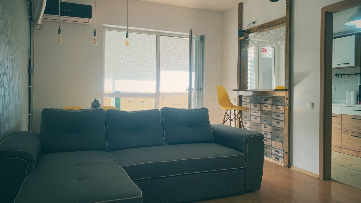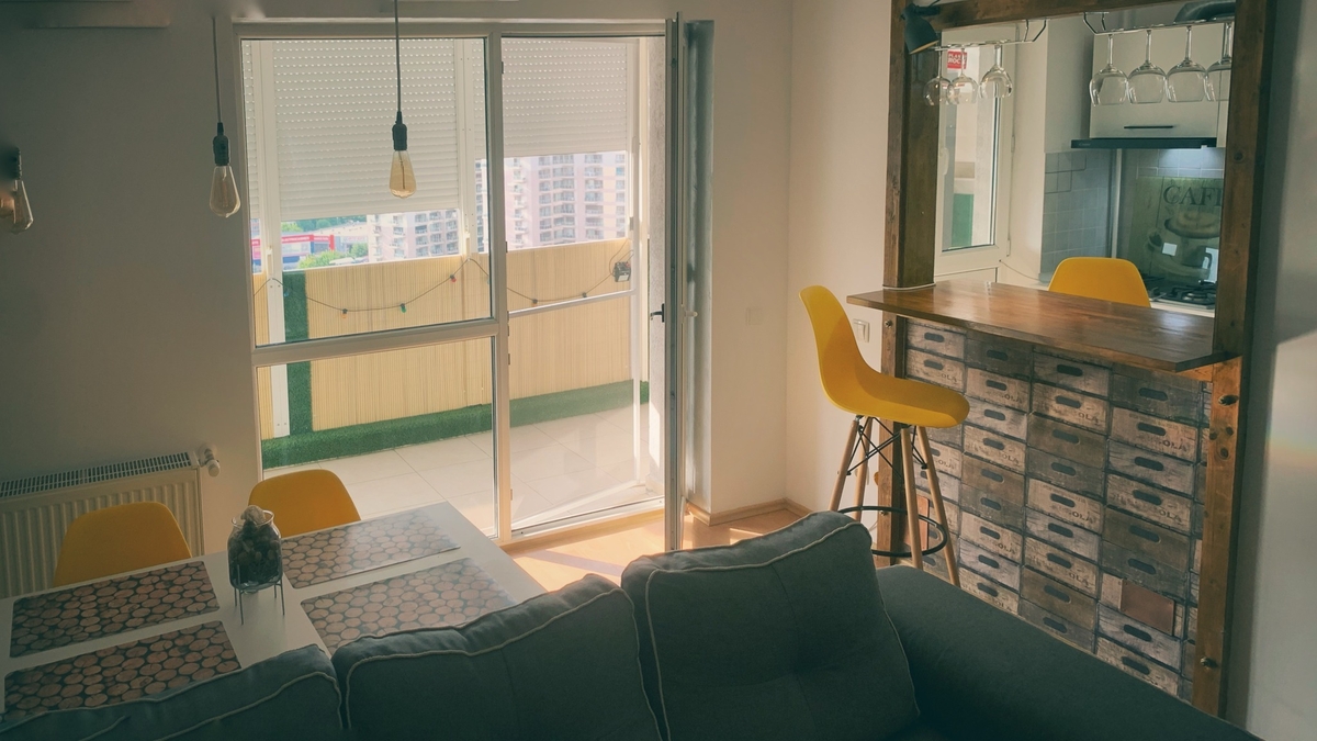 Inchiriez DIN NOU apartamentul cu doua camere + loc de parcare privat in complex, situat in zona Auchan Titan – Jean Steriadi – Bratarii, Sector 3, la etajul 14 al unui bloc construit in 2010. Apartamentul este ingrijit si igienizat complet si se inchiriaza complet mobilat si utilat. Dispune de bucatarie separata, unde mobilierul este organizat pe o lungime de 3.6 metri, oferind in total 7.2 metri liniari (sus si jos) de spatiu de depozitare, precum si de un bar intre bucatarie si living. Exista suficiente spatii pentru organizare in apartament: doua dulapuri mari, un dulap incastrat si o biblioteca incapatoare. Balconul este semi-inchis, cu rulouri de aluminiu, si are aproximativ 8 mp.