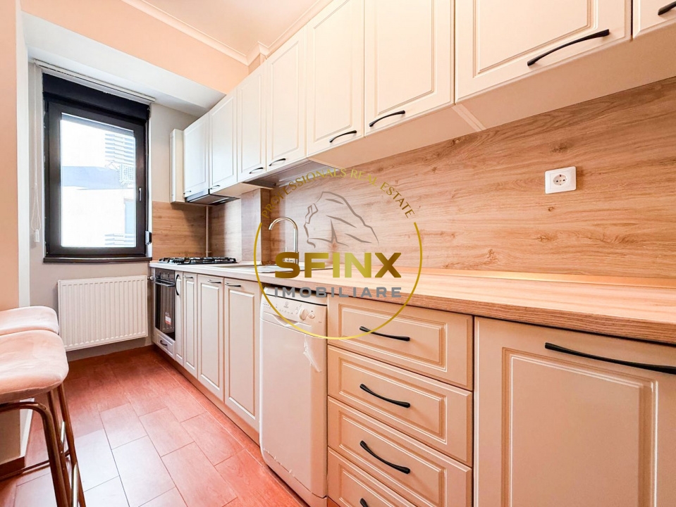 Bucatarie mobilata utilata complet cu spatiu de depozitare separat spatios, masina spalat vase, living cu dressing spatios; apartament de 2 camere foarte mare ca suprafata fiind ca un apartament de 3 camere in suprafata totala de 78,19 mp.