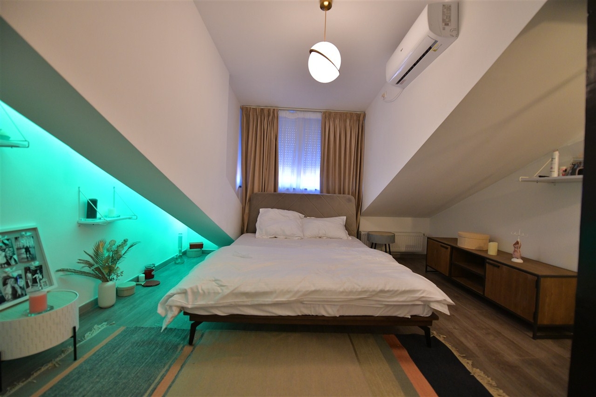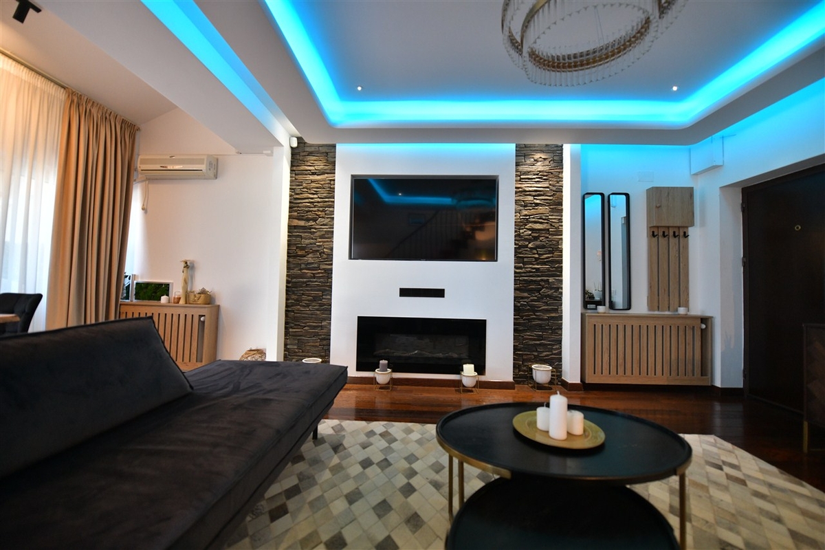 etaj 3 si mansarda, 2 gr. sanitare, mobilat si utilat (masina de spalat vase), 180 mp (cu terasa de 59 mp), amenajat cu semineu, centrala, termopan, AC, parchet, loc pentru gratar, 2 locuri de parcare.