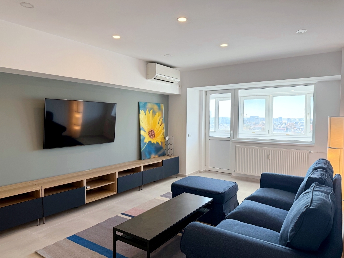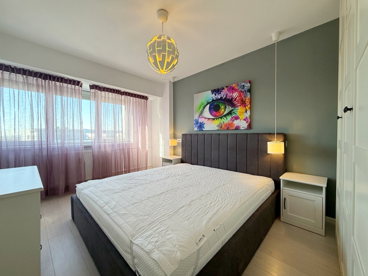 Apartamentul se afla la etajul 9/9 si ofera o priveliste foarte faina, tocmai buna de admirat din cele 2 balcoane spatioase.