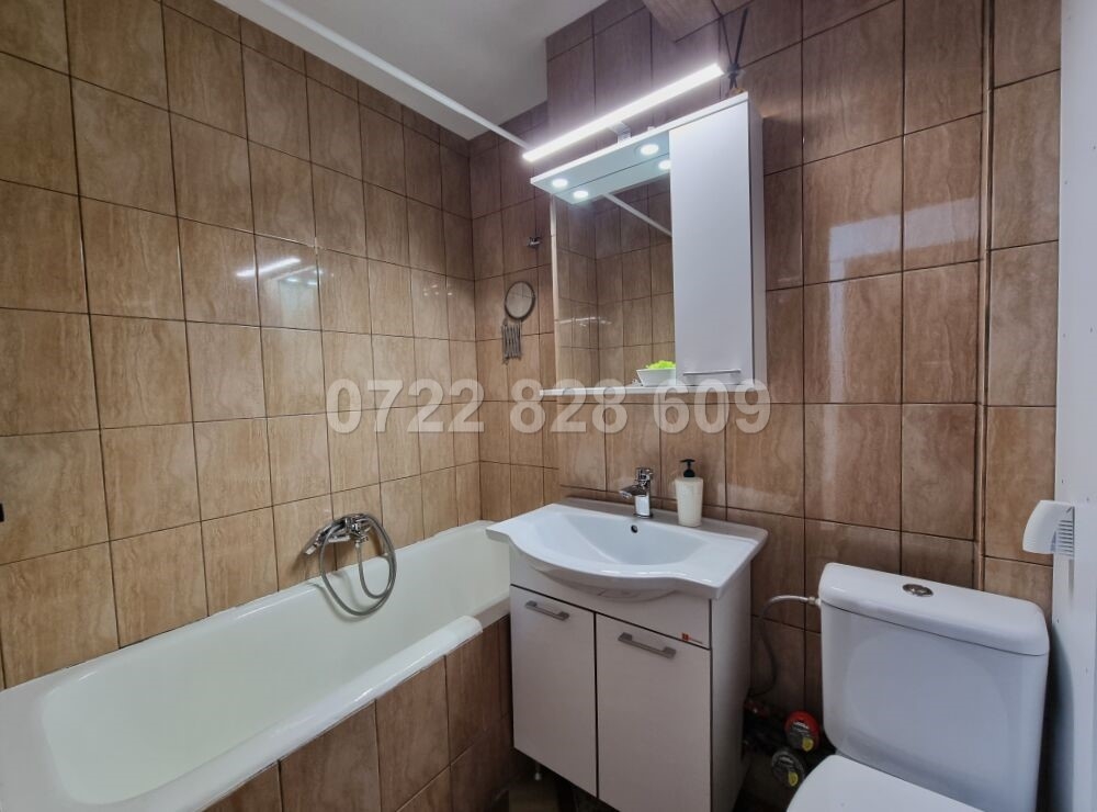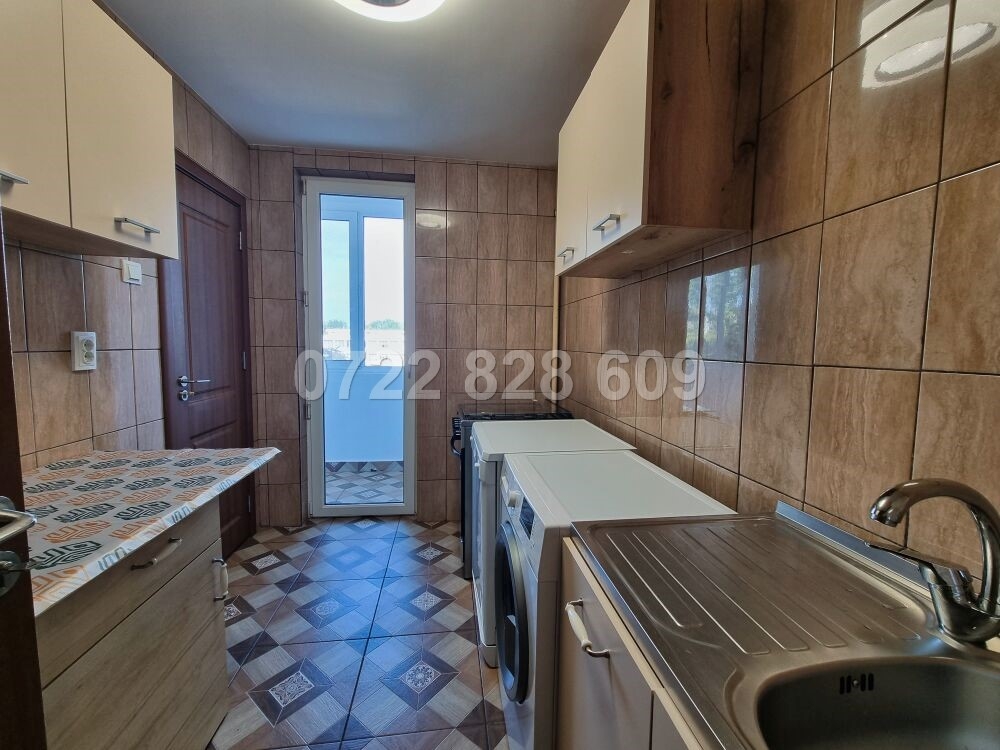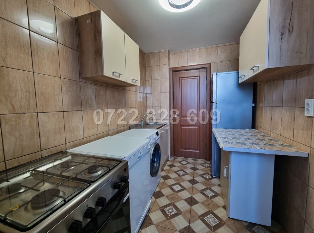 Apartamentul se inchiriaza nemobilat, dar cu bucataria utilata cu masina de spalat vase, masina de spalat rufe, aragaz cu cuptor, combina frigorifica, dulapuri suspendate.