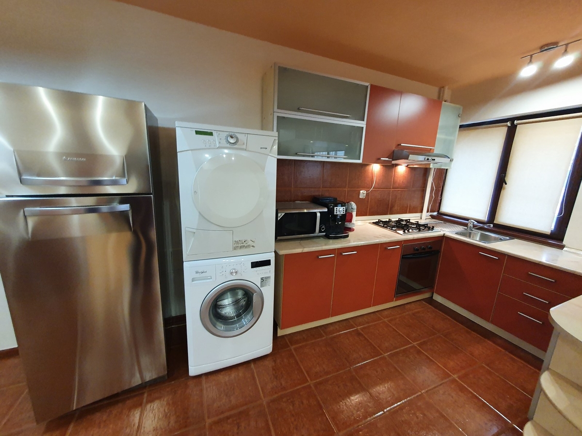 Eurocity presents in the University area, a 3 rooms apartment for rent, fully furnished and equipped in a modern style, with 2 bedrooms each one has it’s own bathroom and dressing, living and another bathroom, a very nice open kitchen equipped with modern appliances” washing machine with dryer, quality finishes, wooden parquet, ceramic wall and floor tiles, insulating windows, 3 a/c, suitable for residence, especially for expats, having all the conditions to live in the heart of Bucharest.