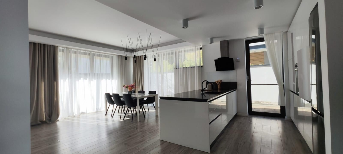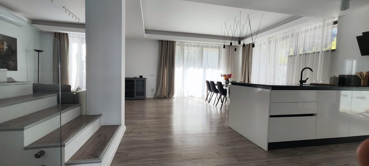 Top Home Advisors va propune spre inchiriere o frumoasa vila in stil mediteranian, P+1+Terasa, 5 camere, 3 gr sanitare, bucatarie deschisa open space, partial mobilata, teren 480 mp, curte libera 350 mp, toate utilitatile