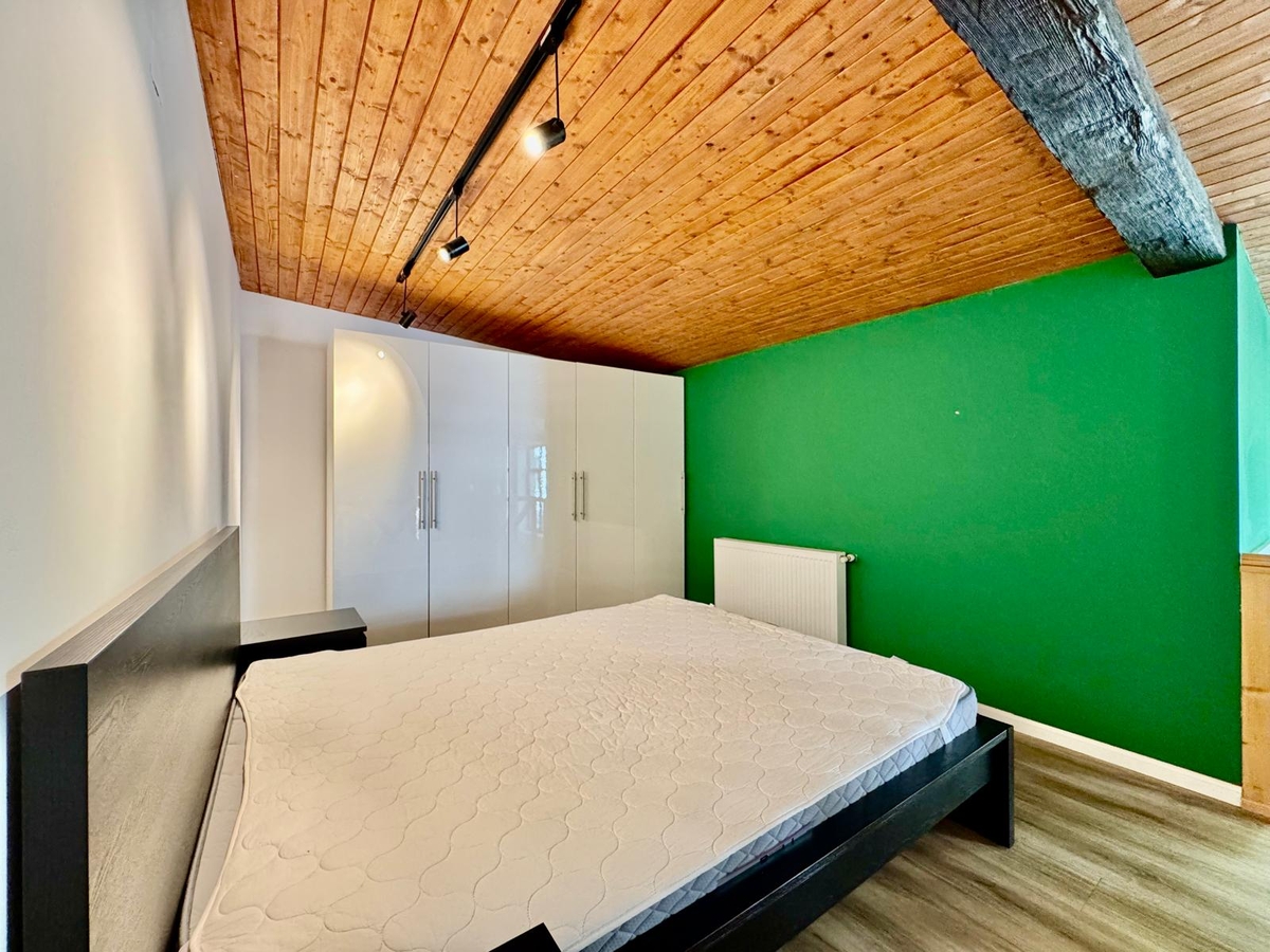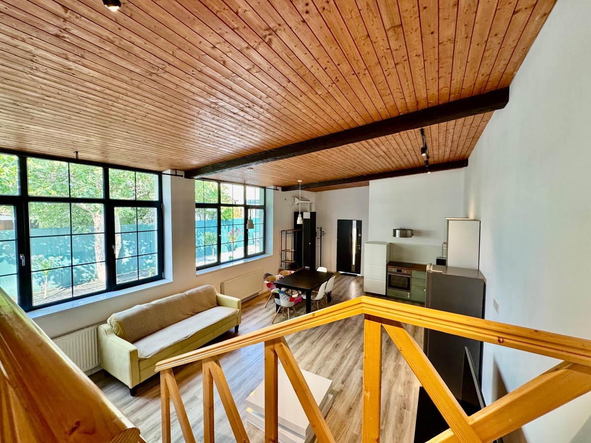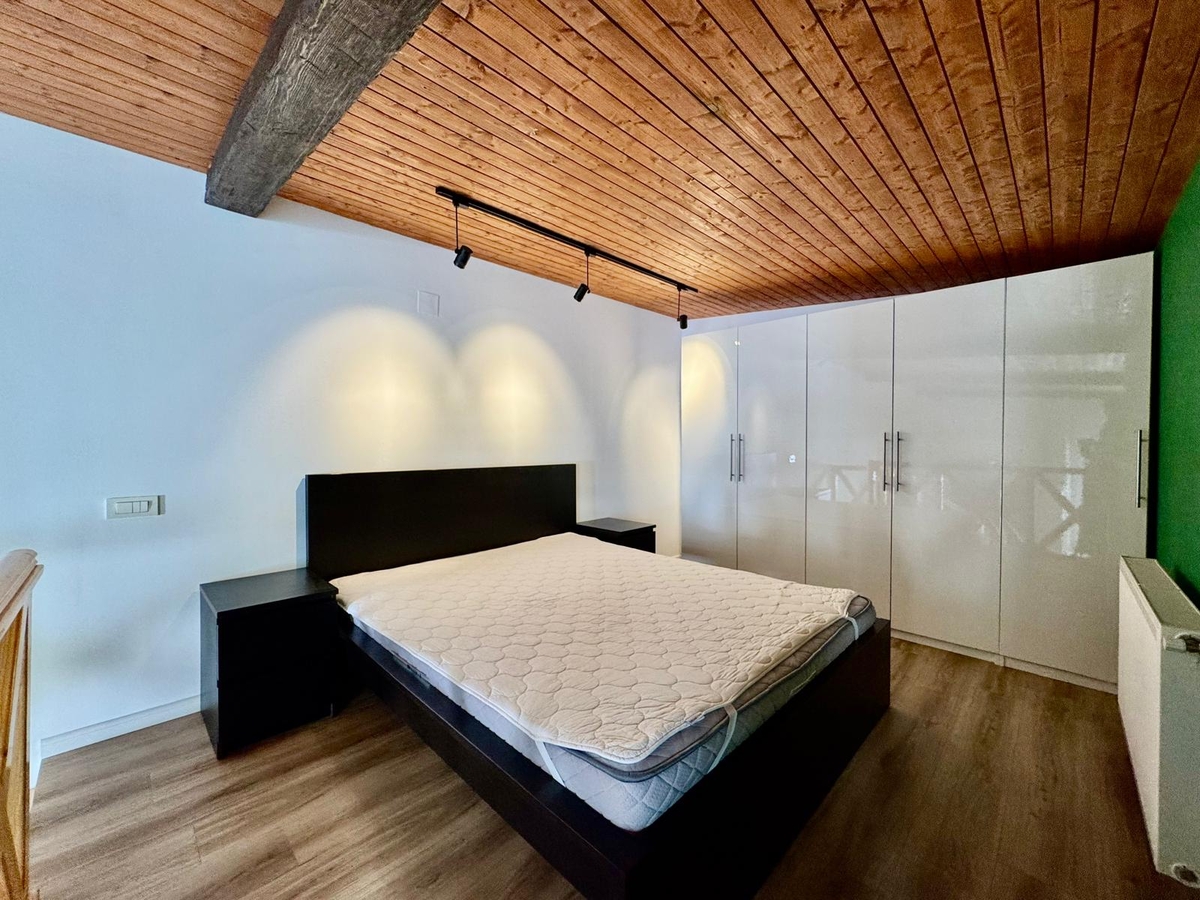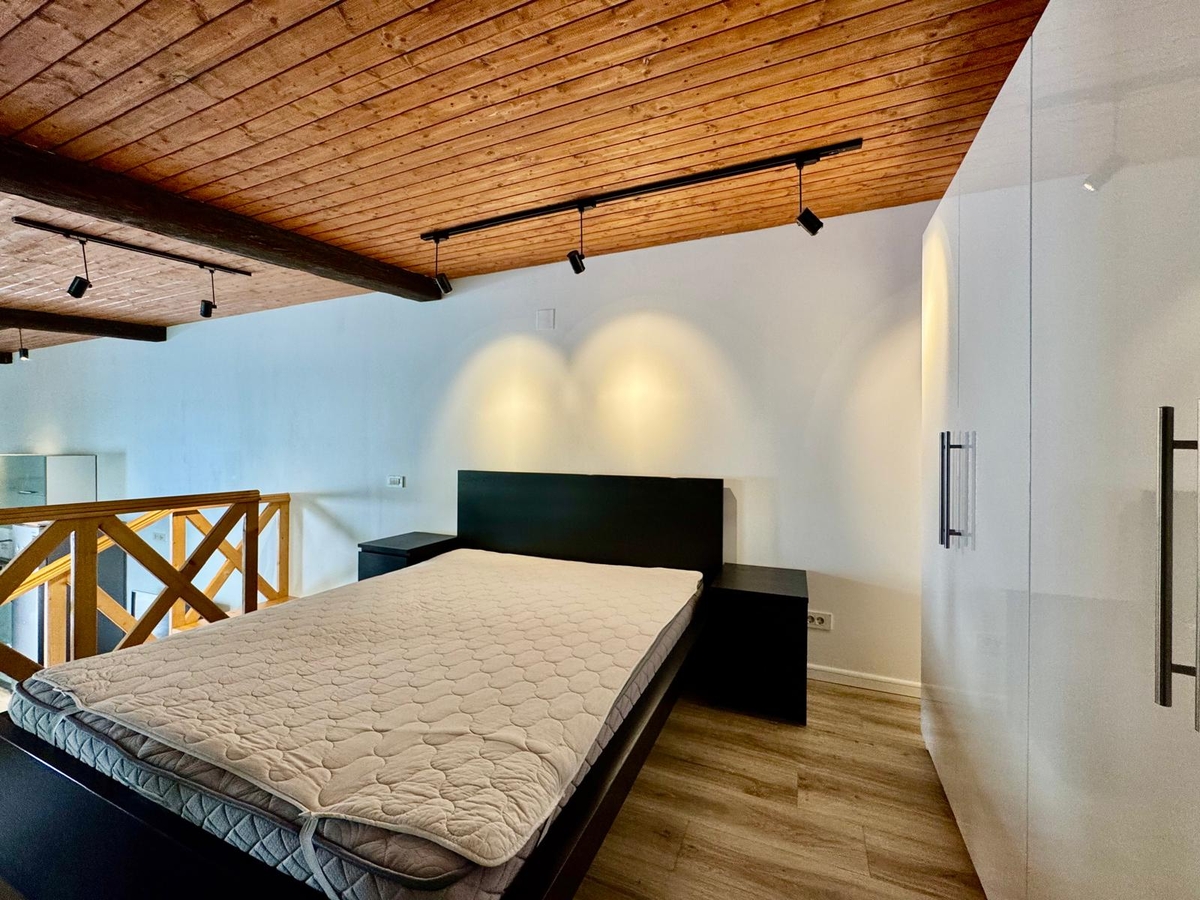 Dormitor tip supanta (mezanin), accesibil pe o scara interioara din lemn – spatiu cald si aerisit
