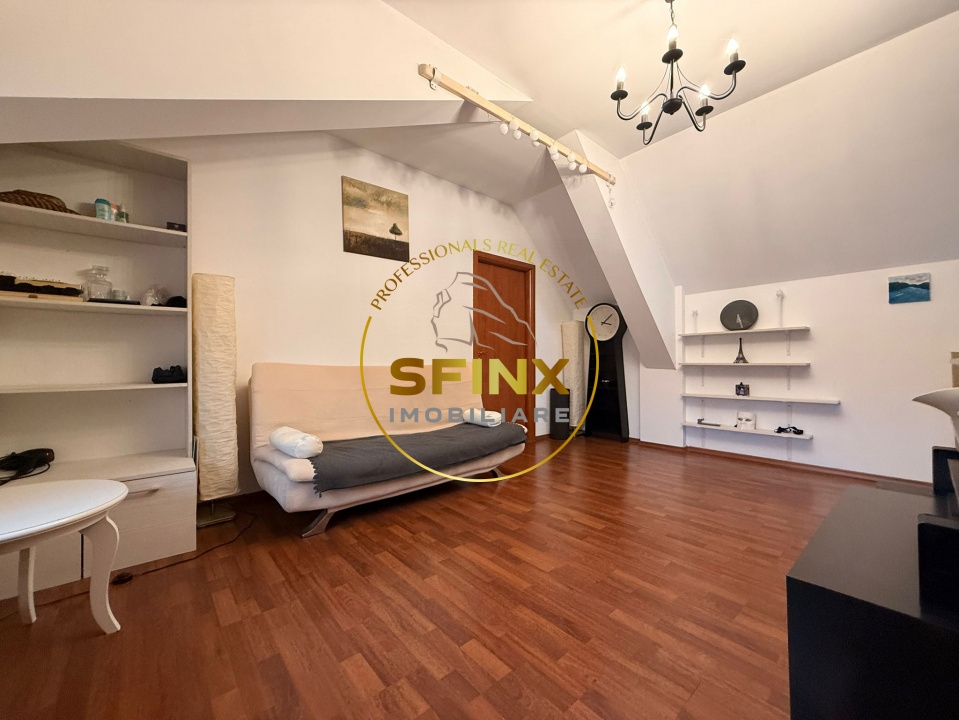 Mansarda: 2 camere, baie, bucatarie; suprafatatotala 49 mp